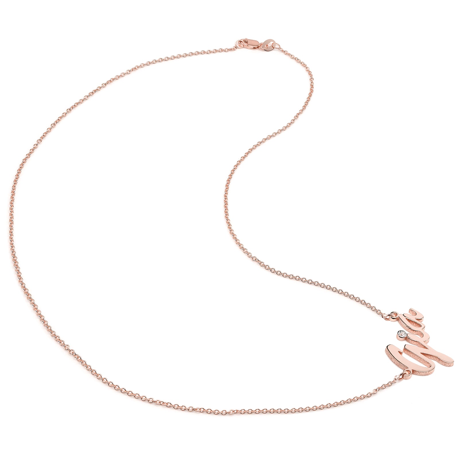 Custom 14K Gold and Diamond Name Necklace with Script Text