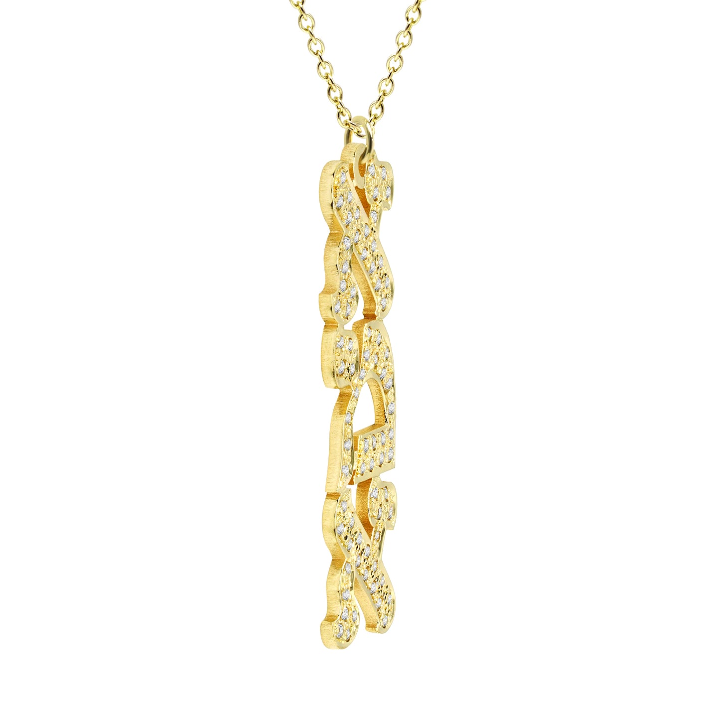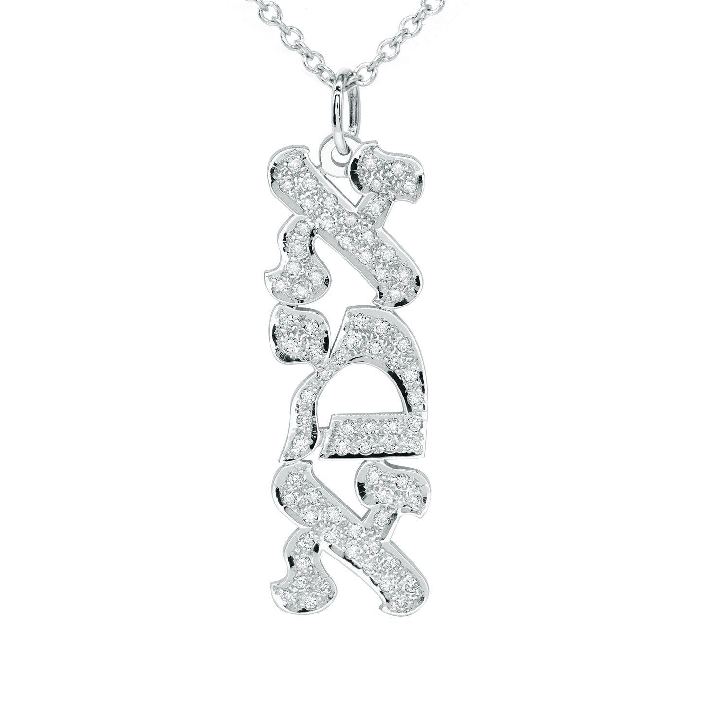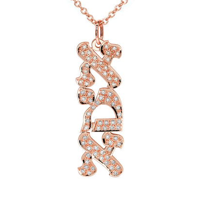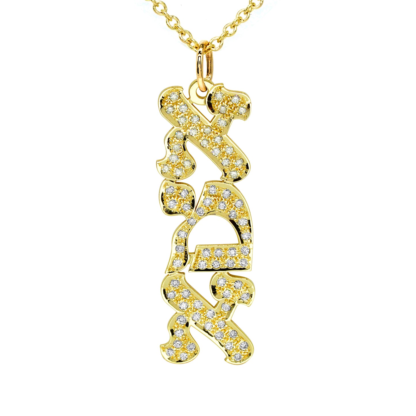 Custom 14K Gold Vertical Hebrew Name Covered in Diamond Pave Pendant