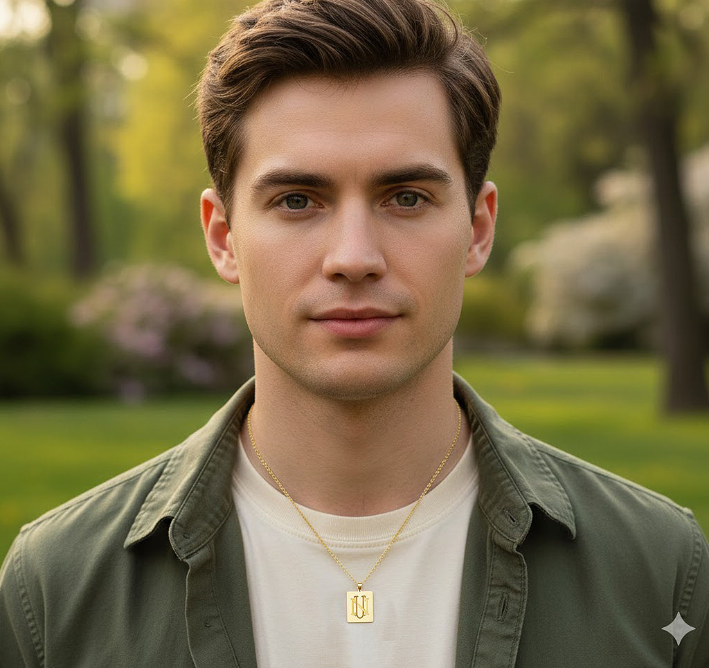 Custom Monogram Rectangle Pendant in 14K Solid Gold | Engravable