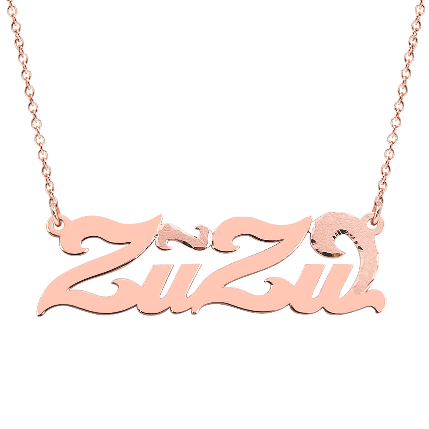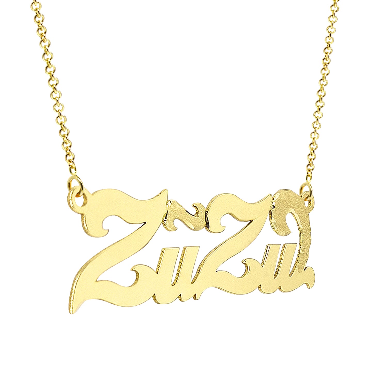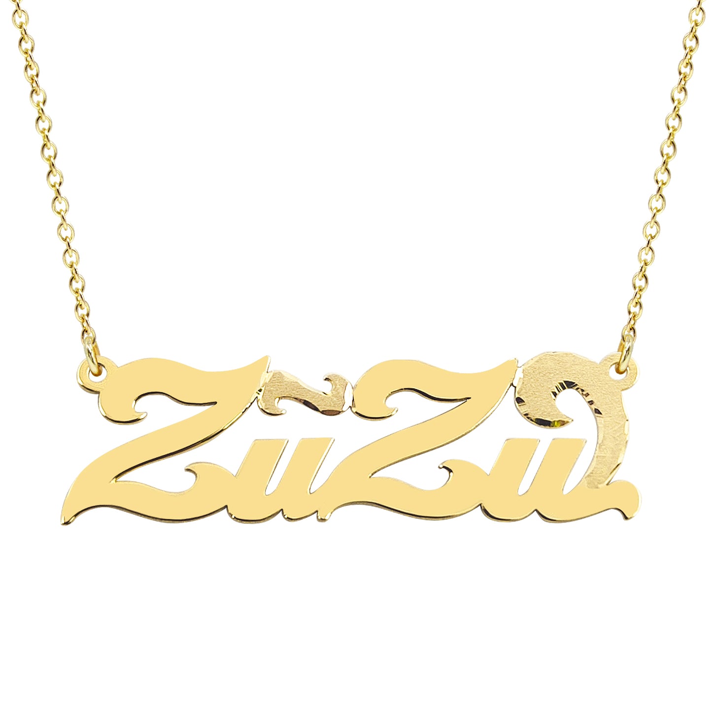 Custom Name Necklace in 14K High Polish Gold with Florentine Finish