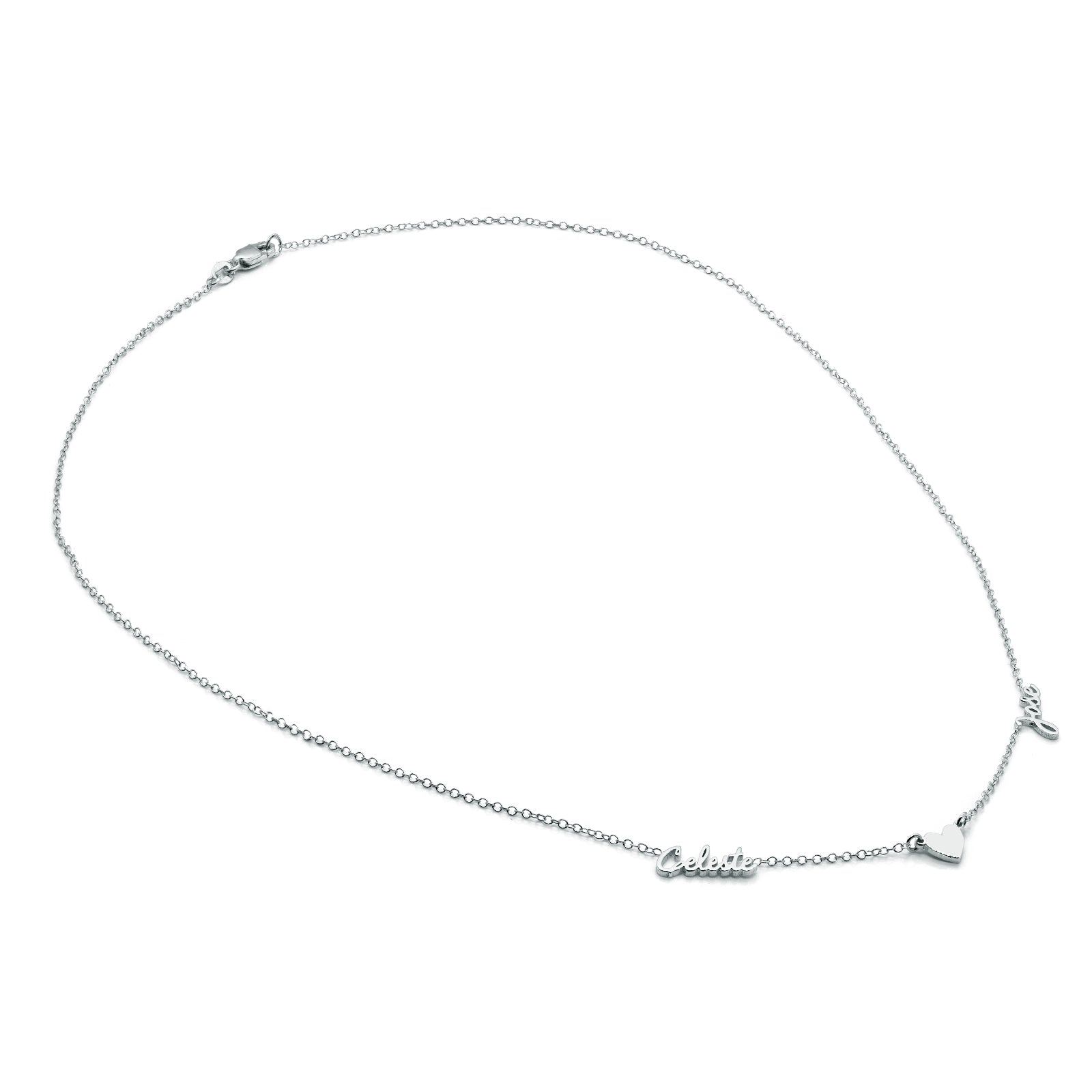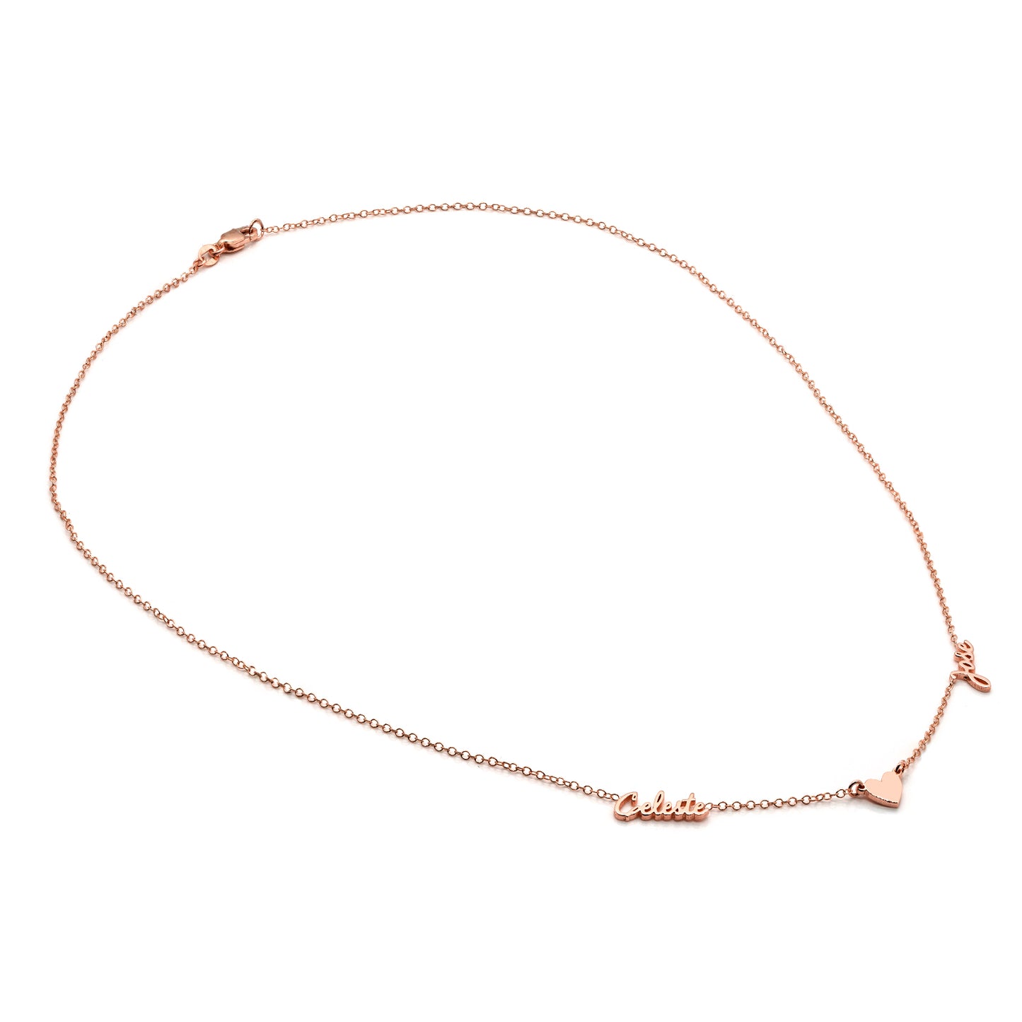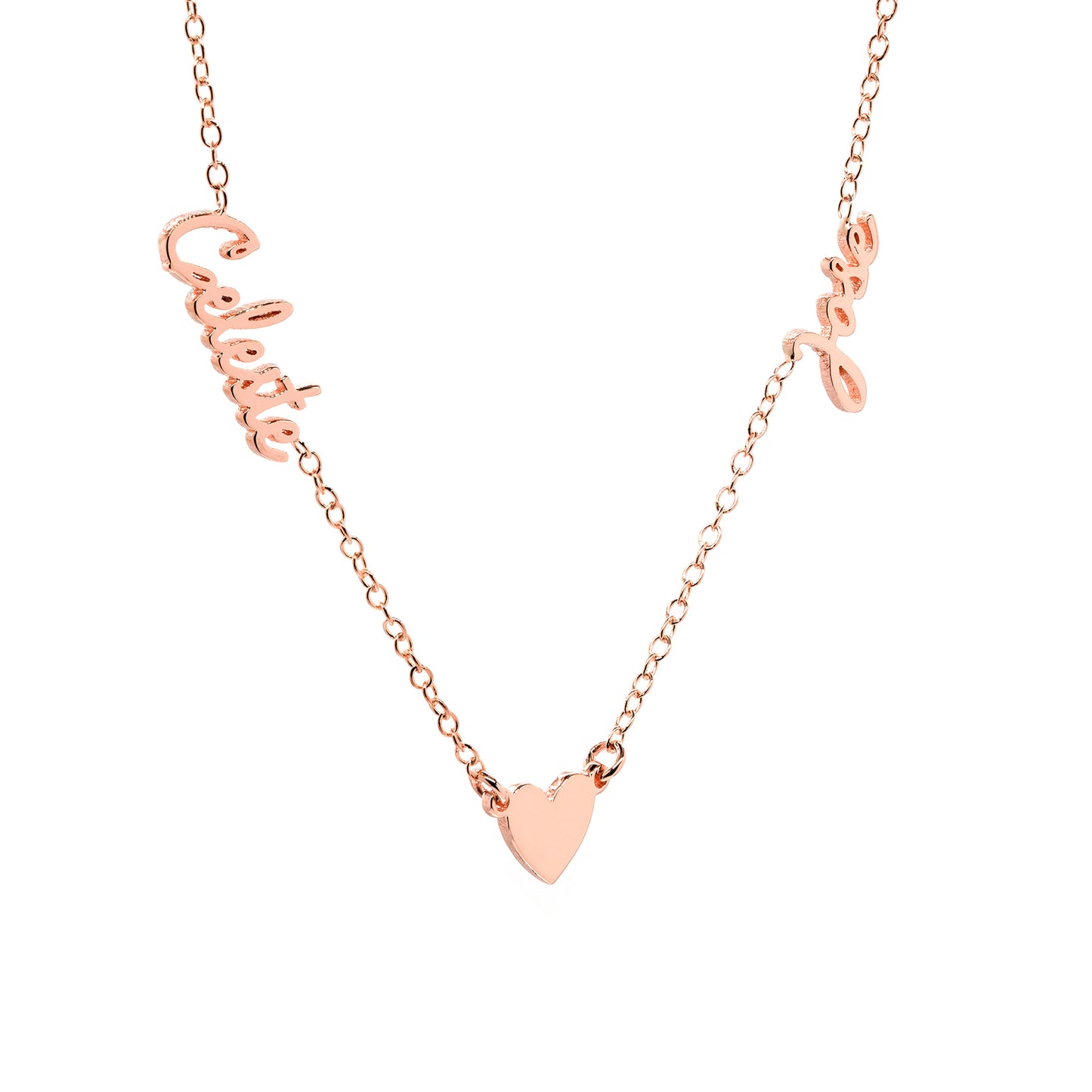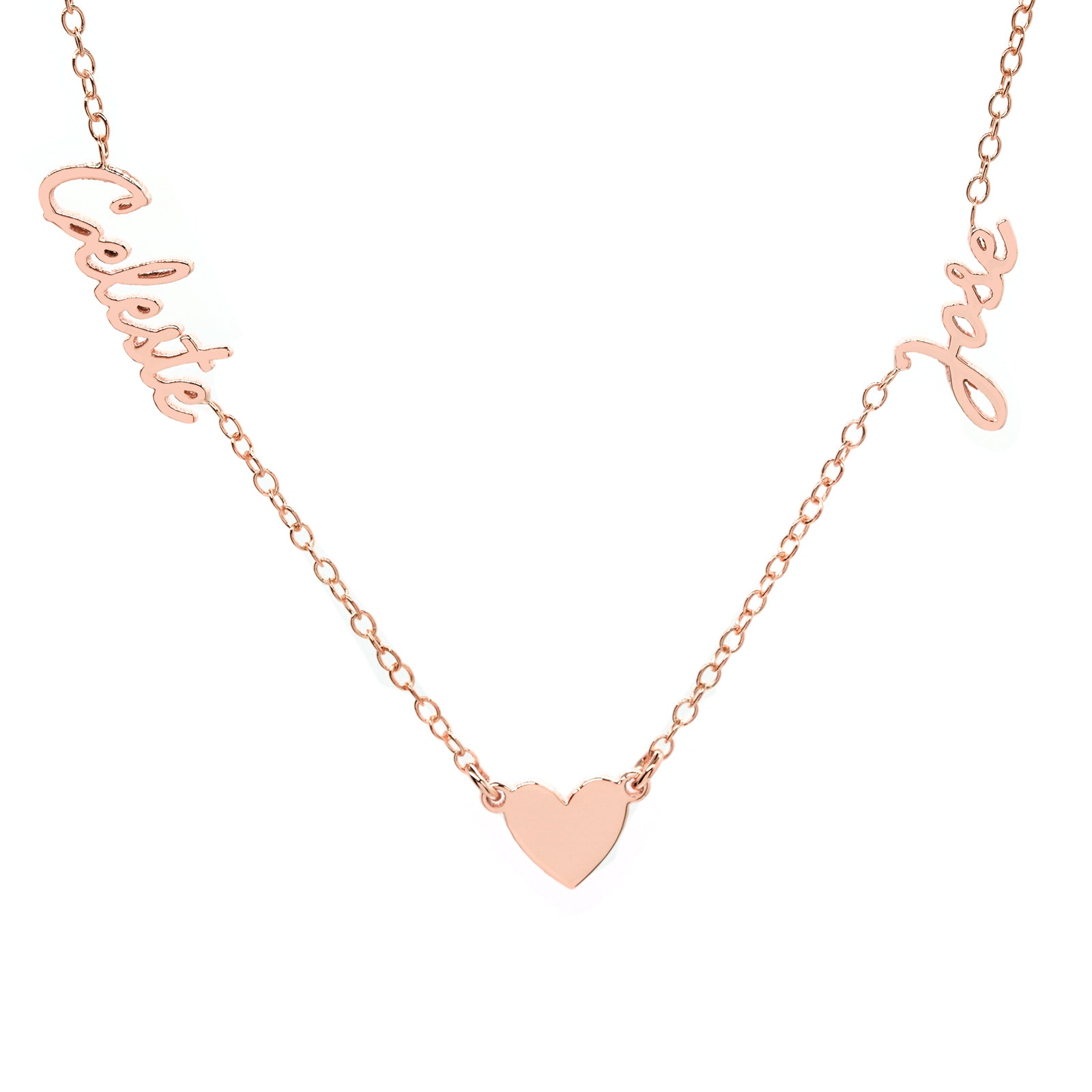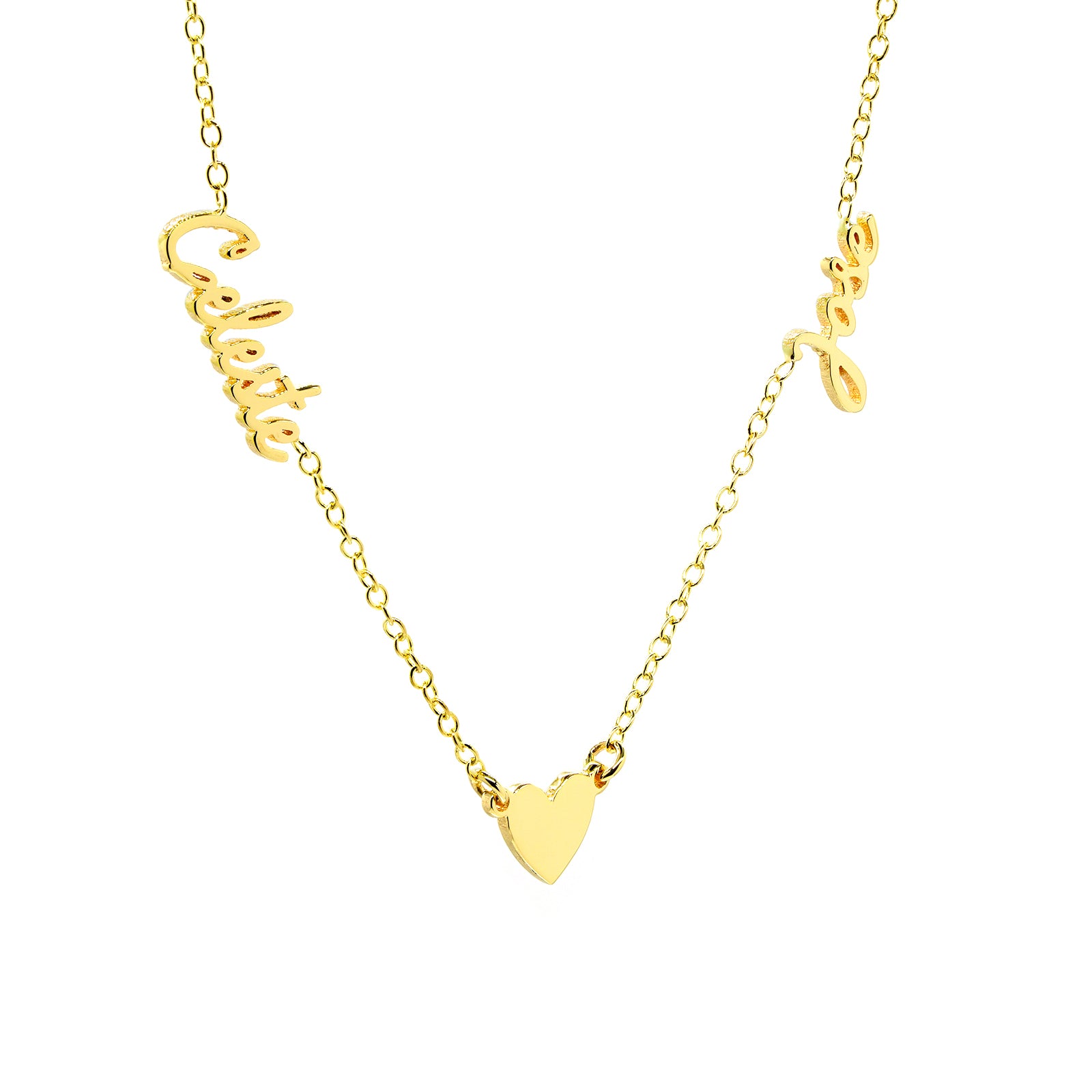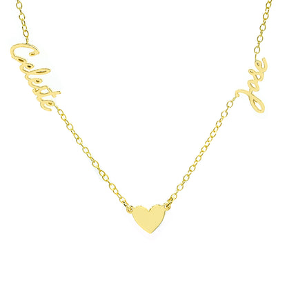 Custom Two Name and Heart Necklace in Freestyle Script and High Polished 14K Gold