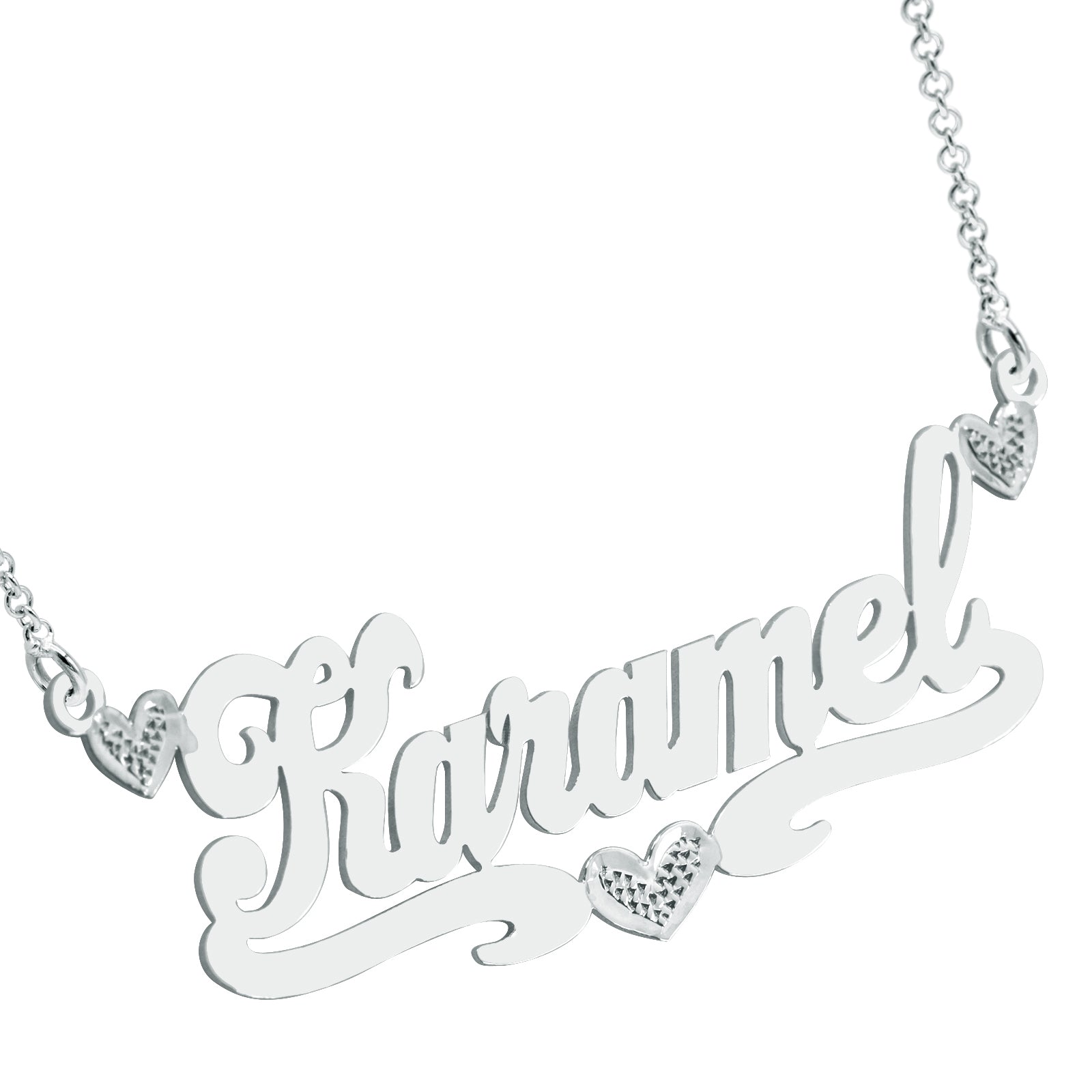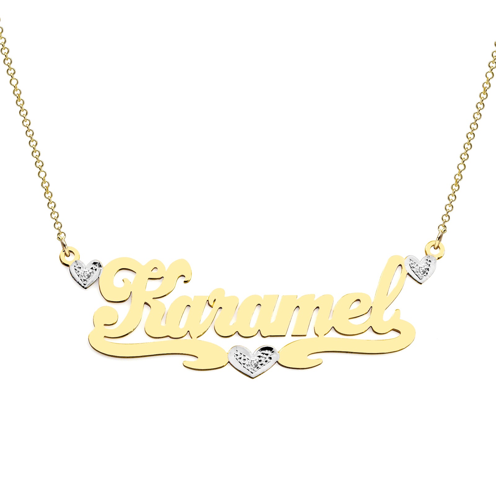 Custom14kt. Gold and Diamond Nameplate Necklace with Heart Flourish with Cable Chain
