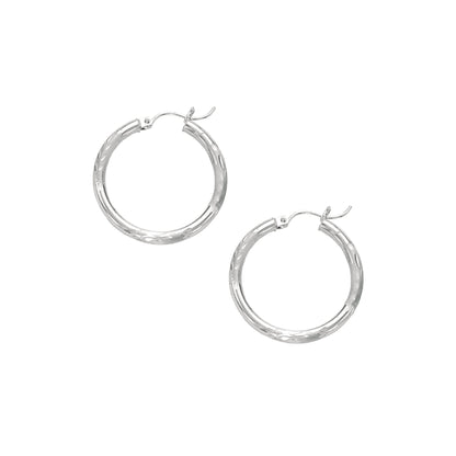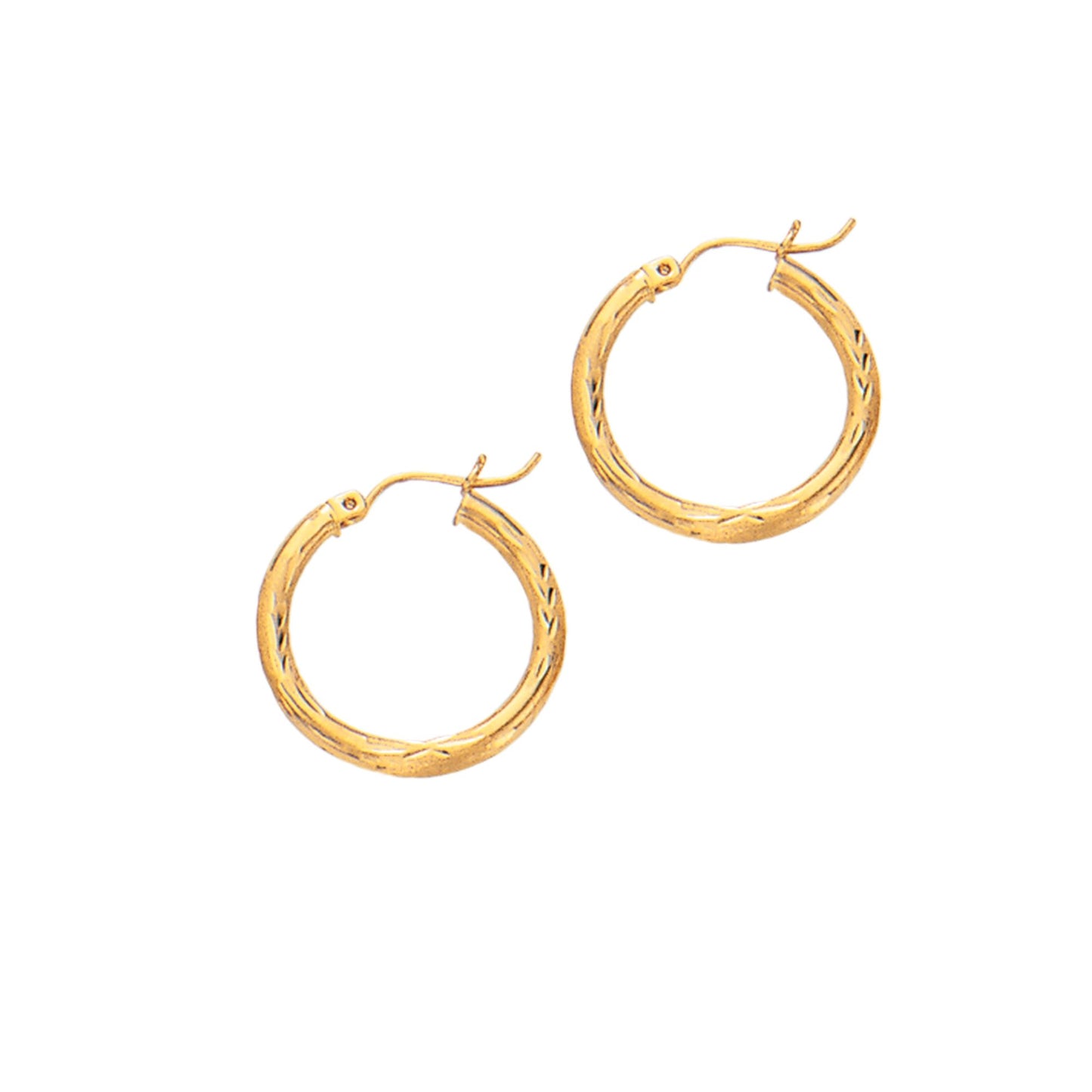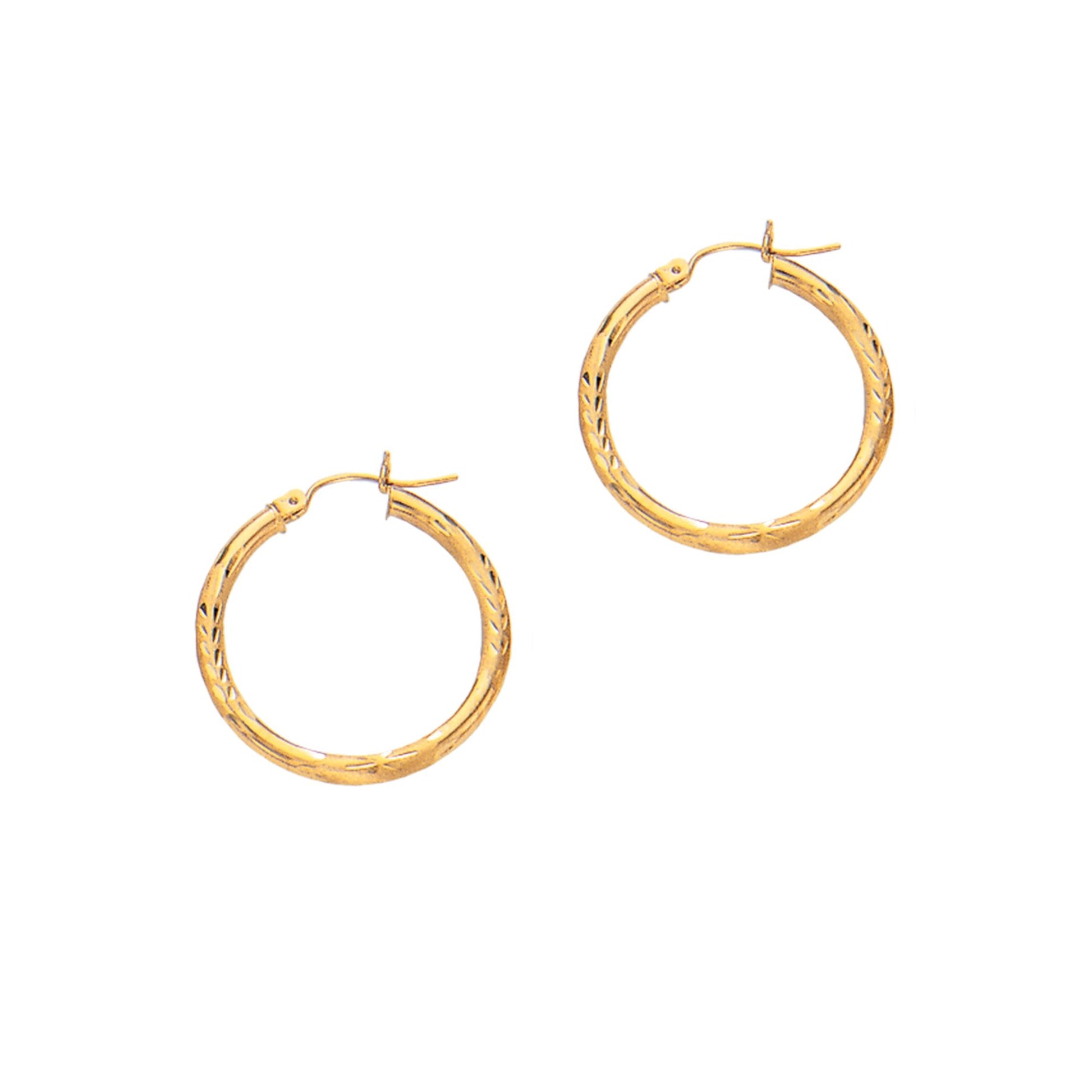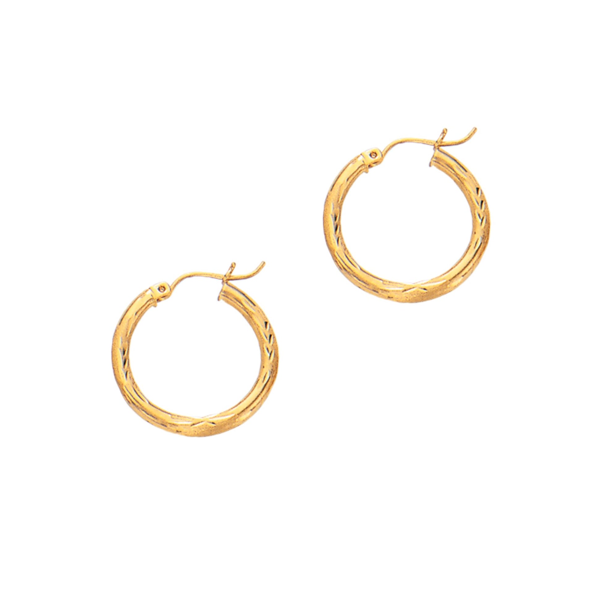 14K Gold Diamond Cut Round Hoop Earrings with Hinged Clasp