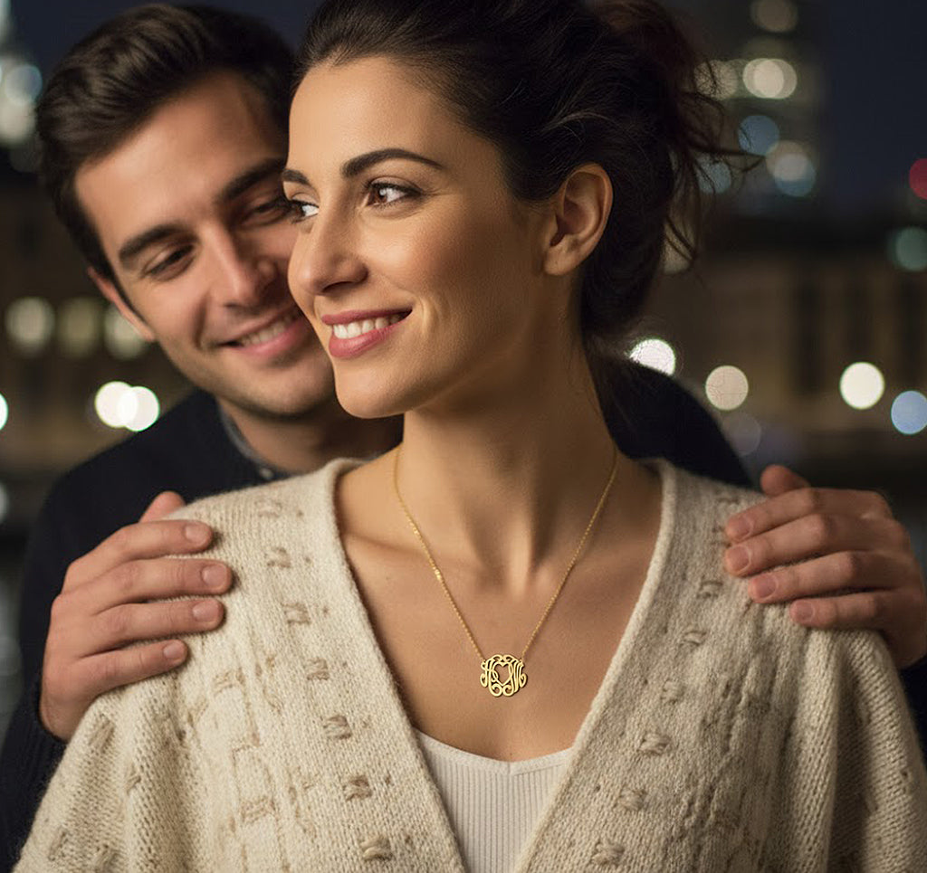14K Gold Heart and 2 letters Script Monogram Necklace