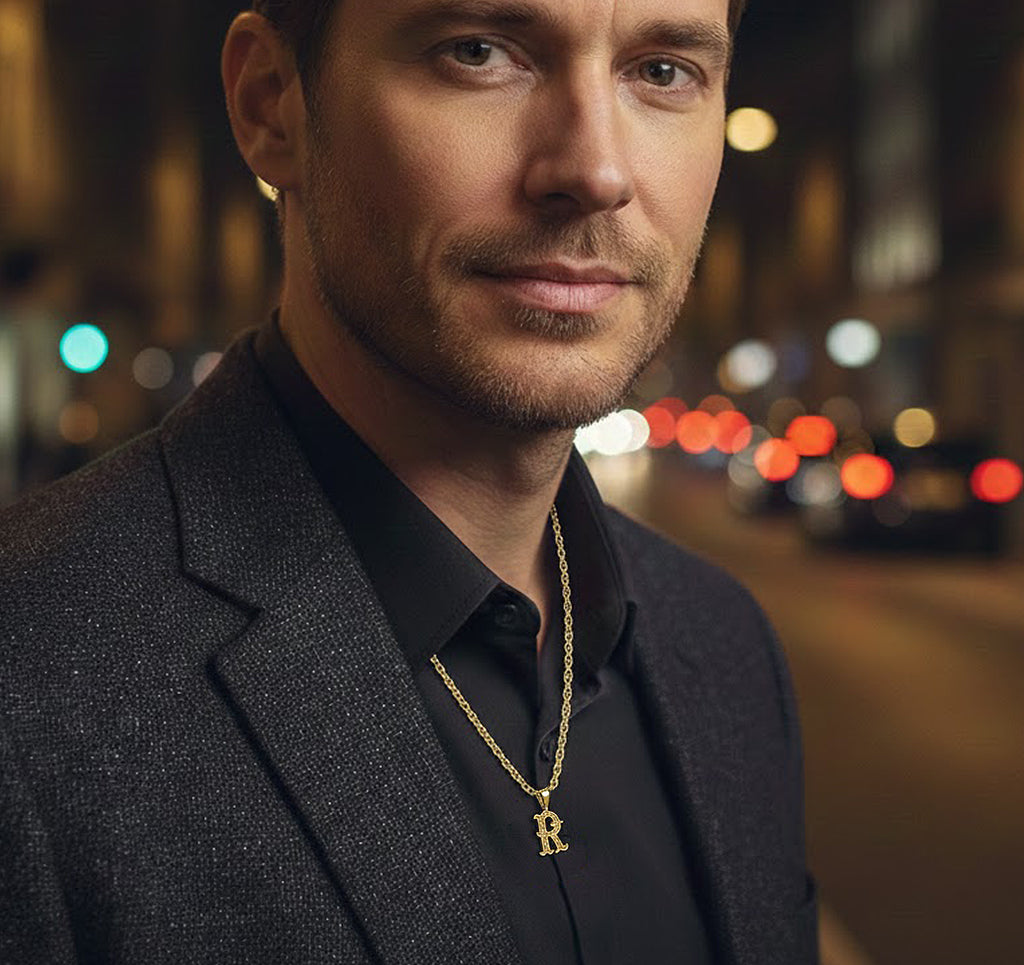 Gothic Monogram Pendant Charm in High Polished 14K Gold