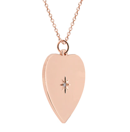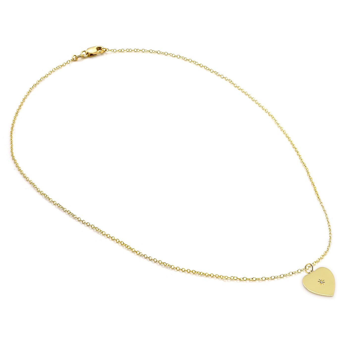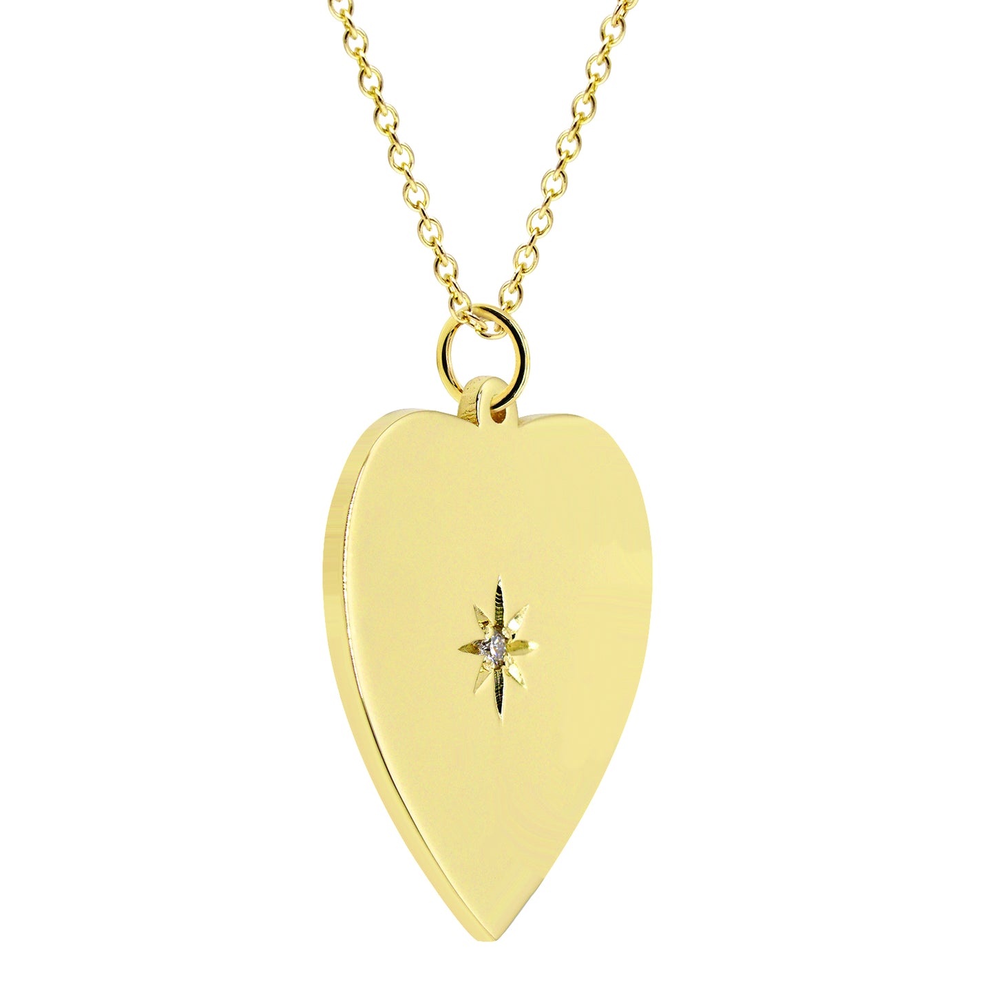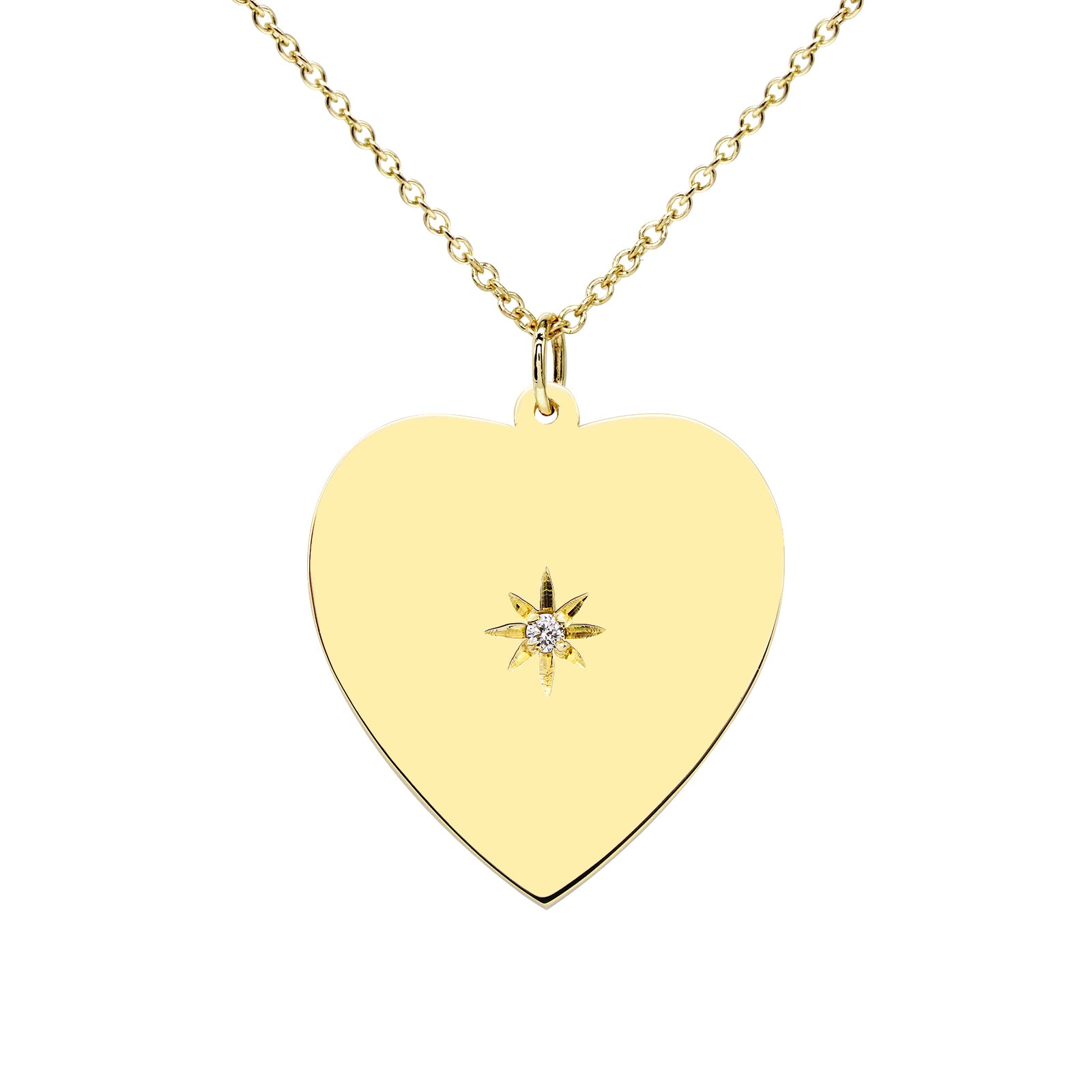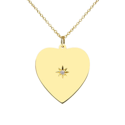 High Polished 14K Gold Heart with Diamond in the Middle | Engravable Back