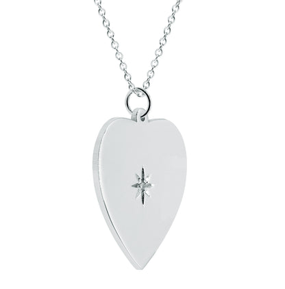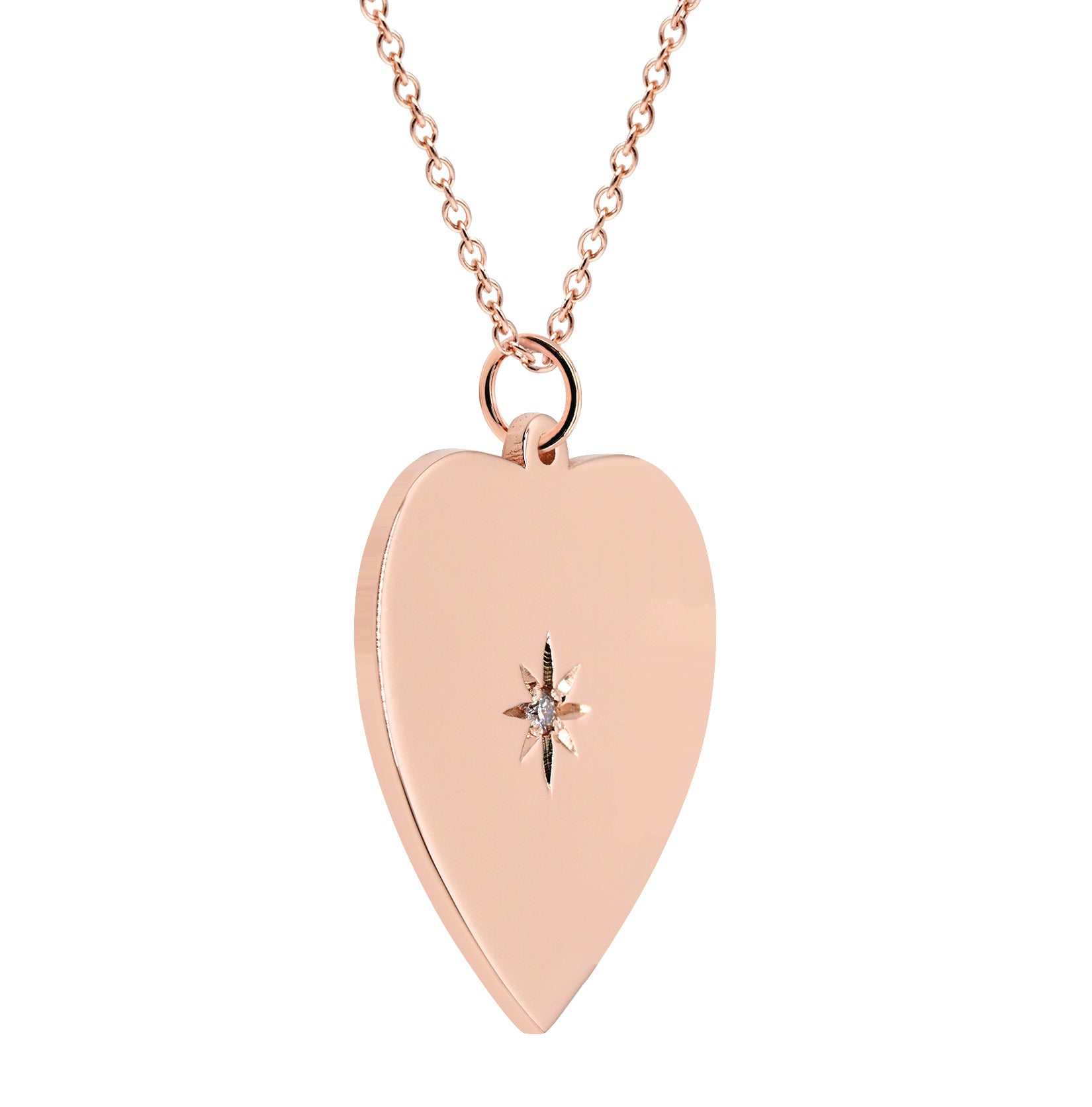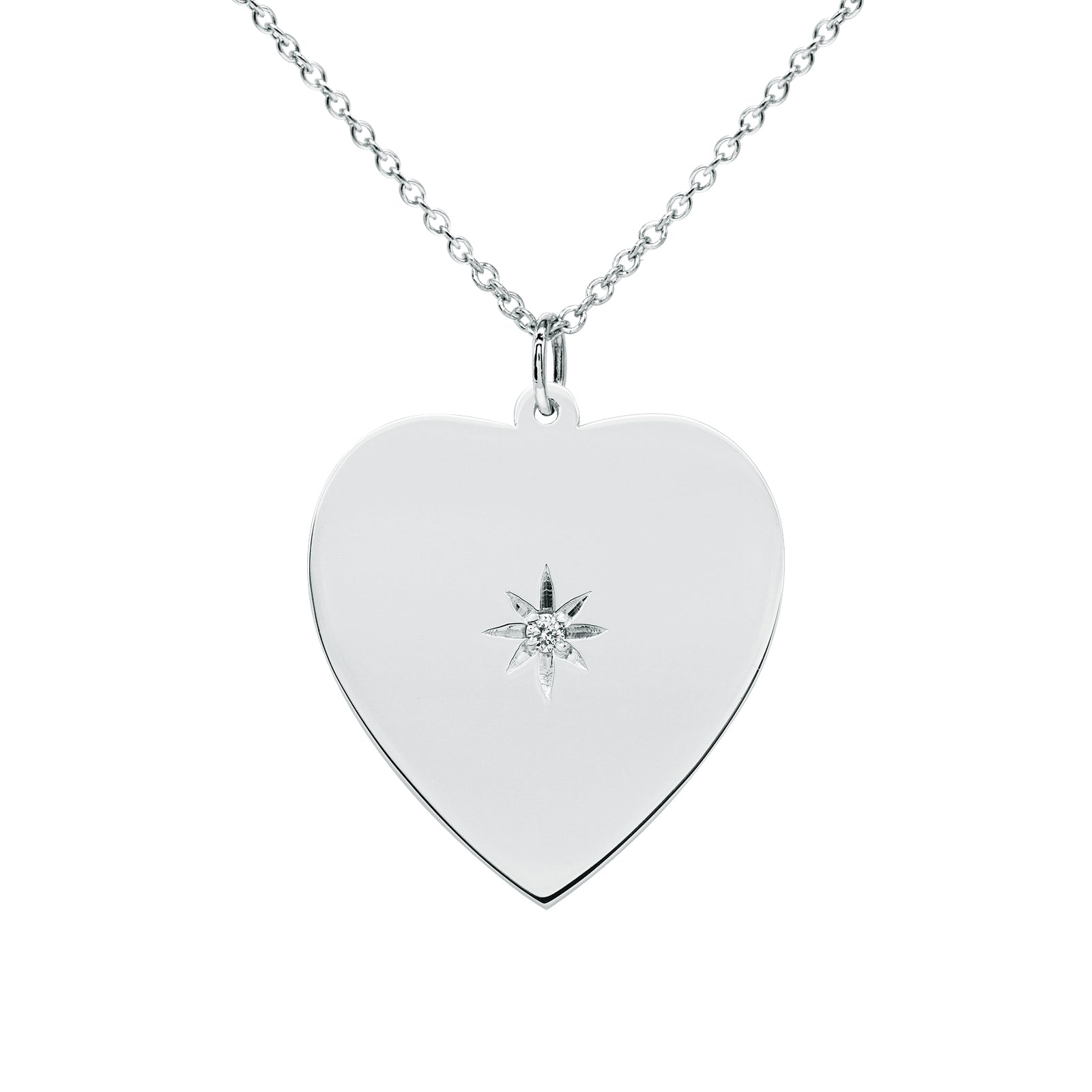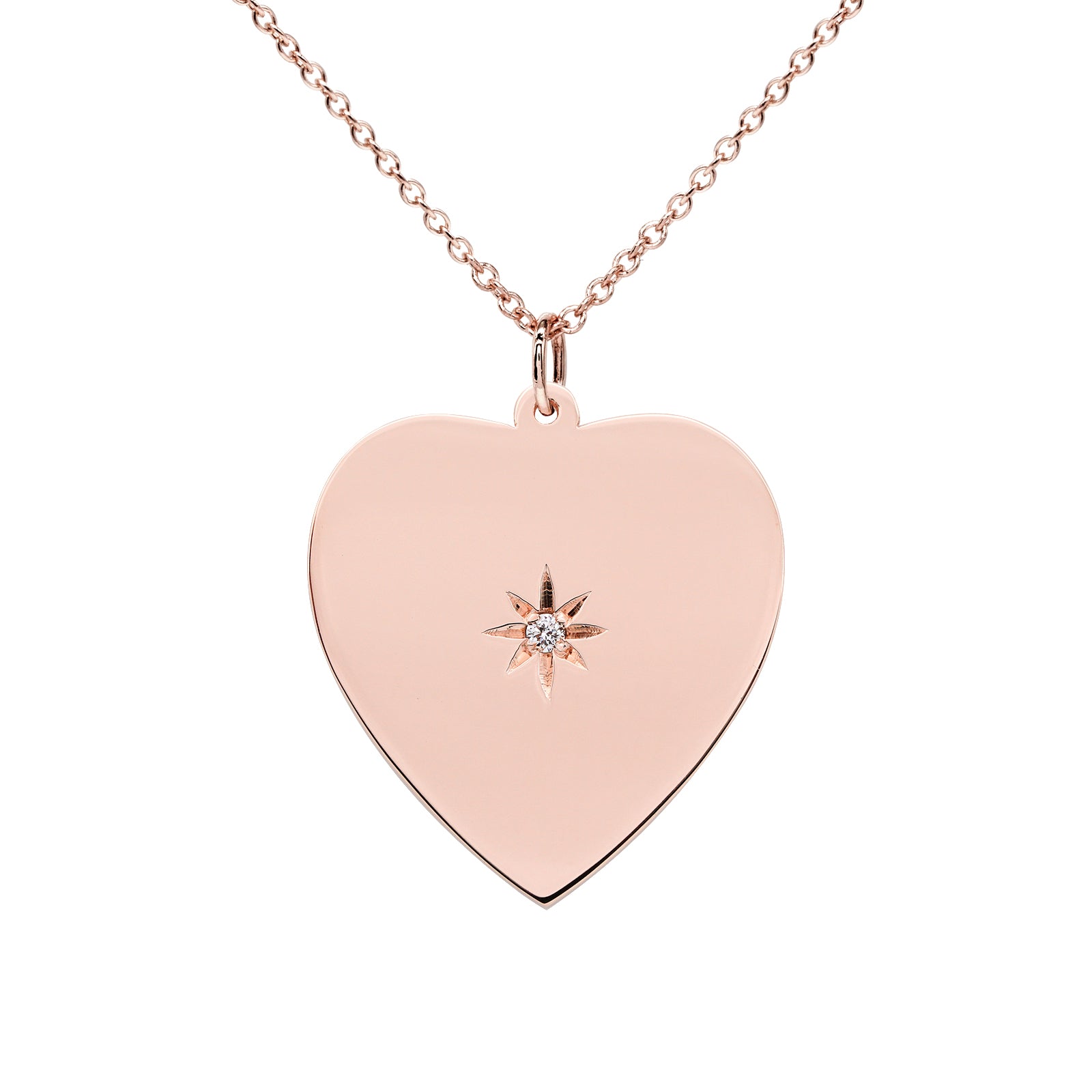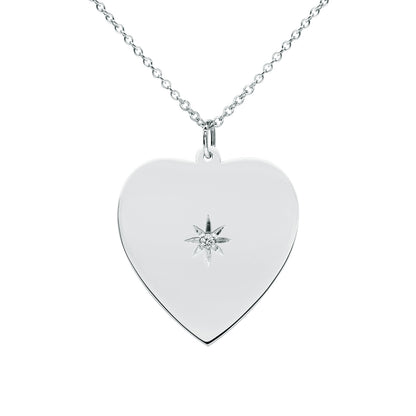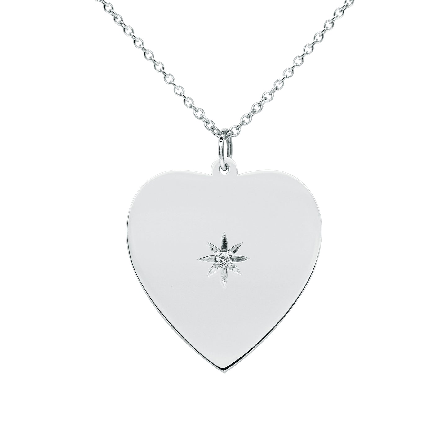 High Polished 14K Gold Heart with Diamond in the Middle | Engravable Back