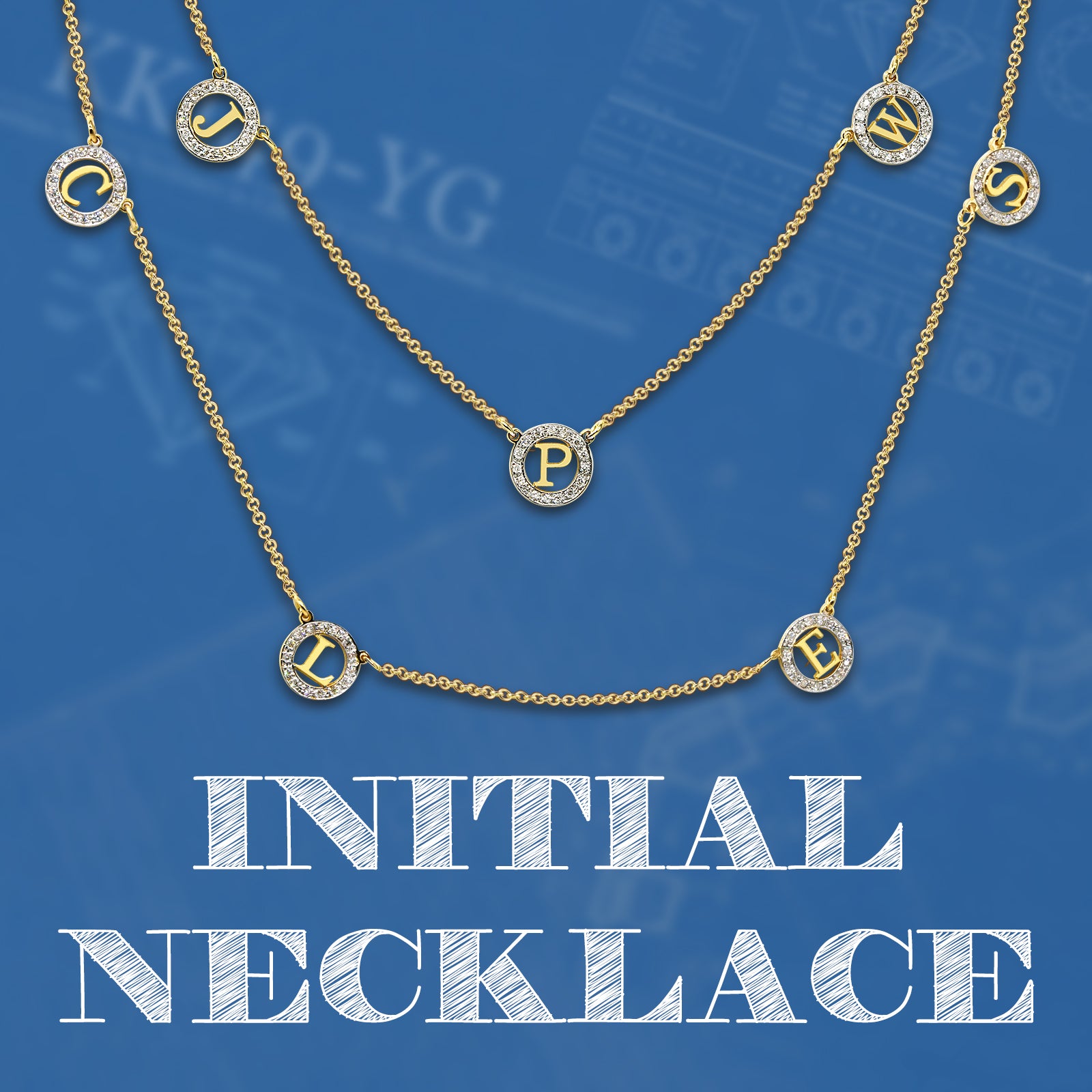 Multi-Initials Station Necklace in 14K Gold with Diamonds | Customizable