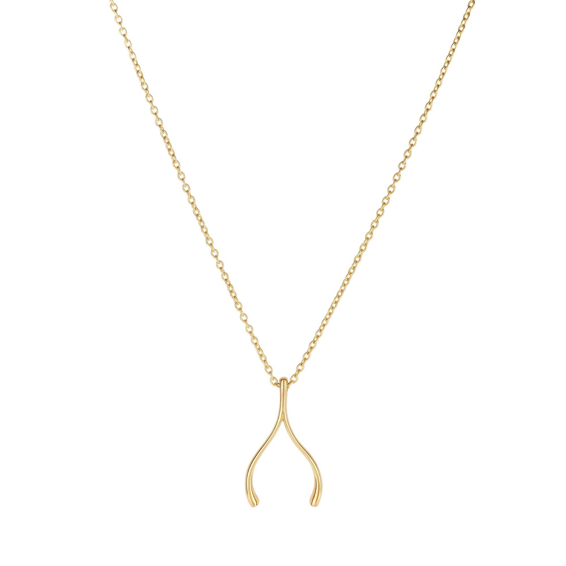 14K Gold Polished Wishbone Charm Pendant Necklace