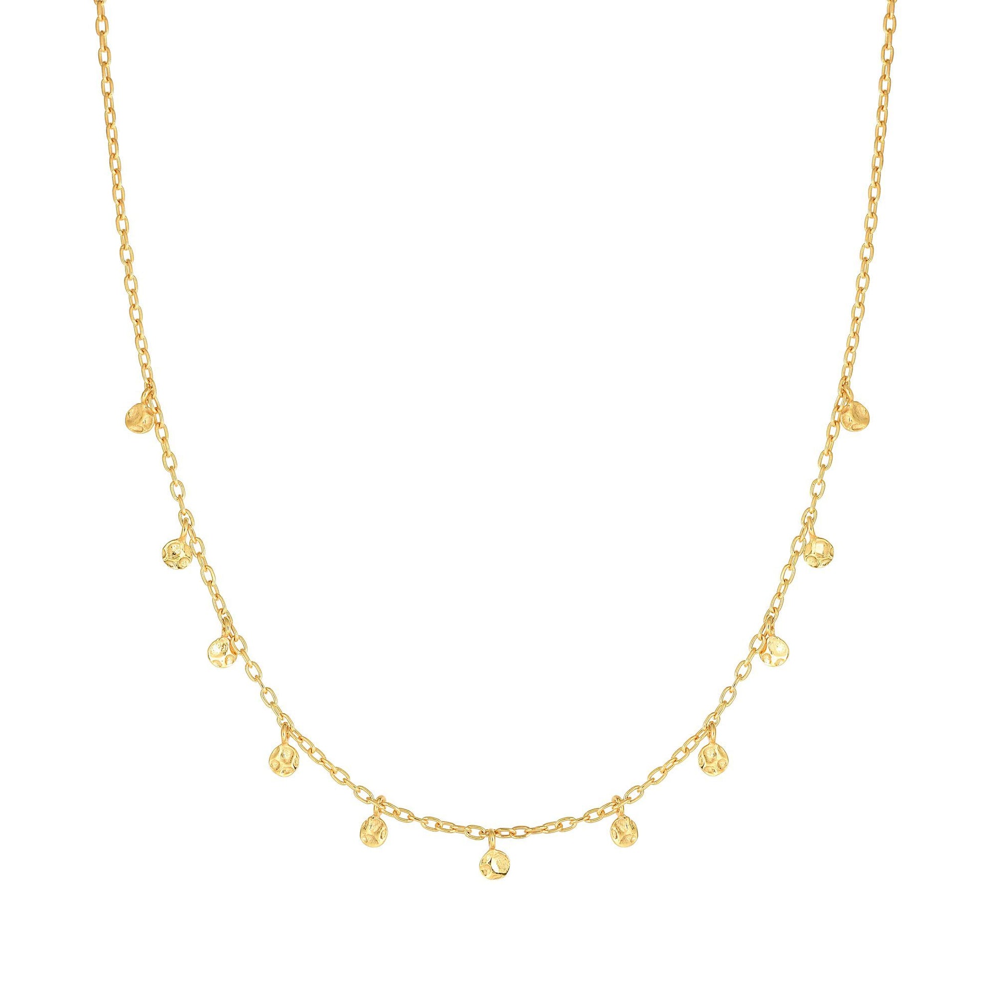 14K Gold Polished Circle Dangle Choker Necklace