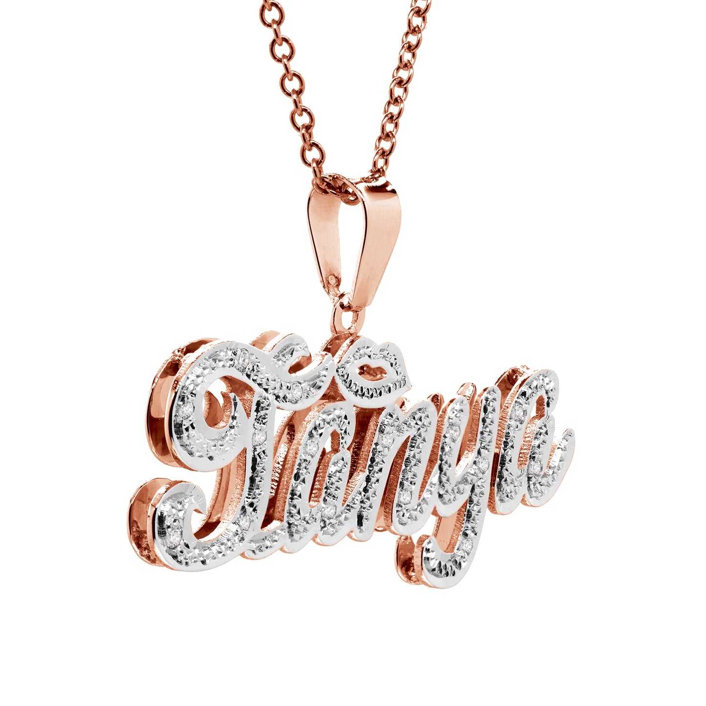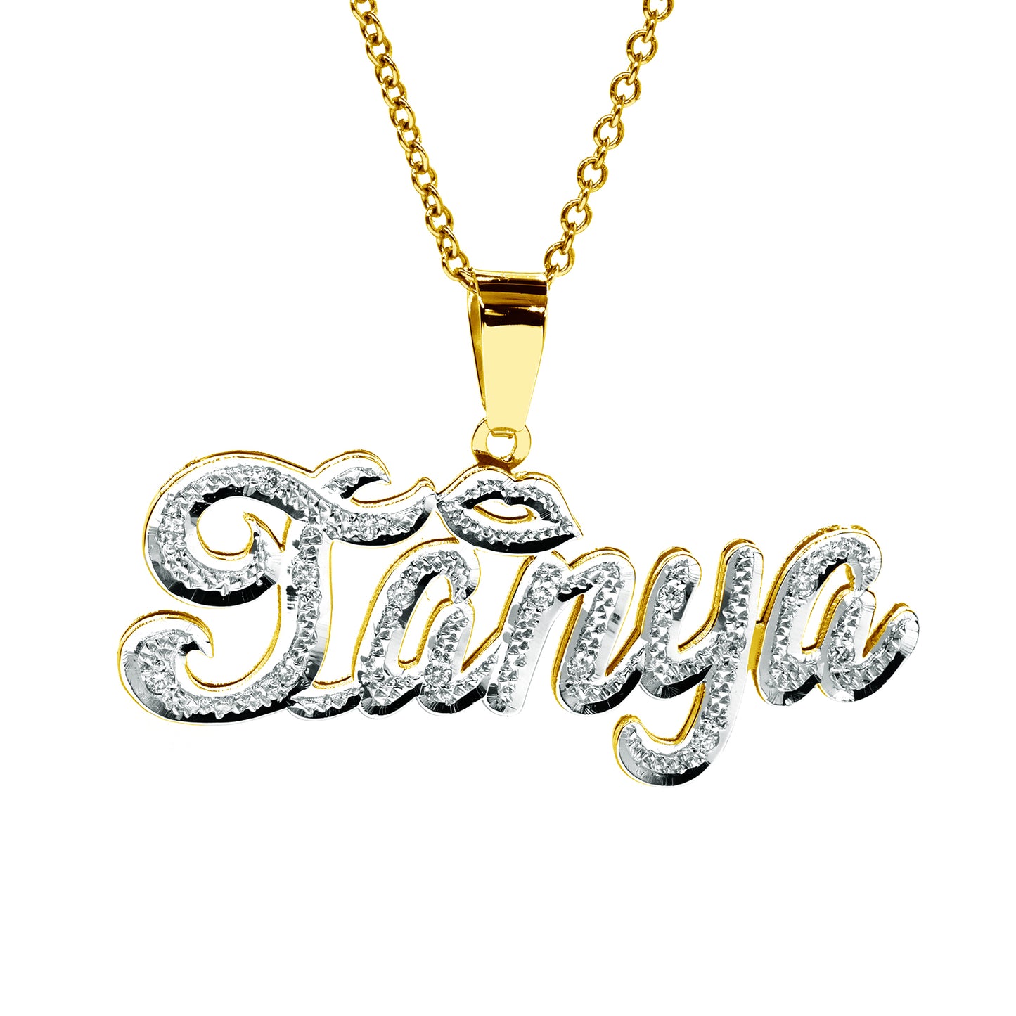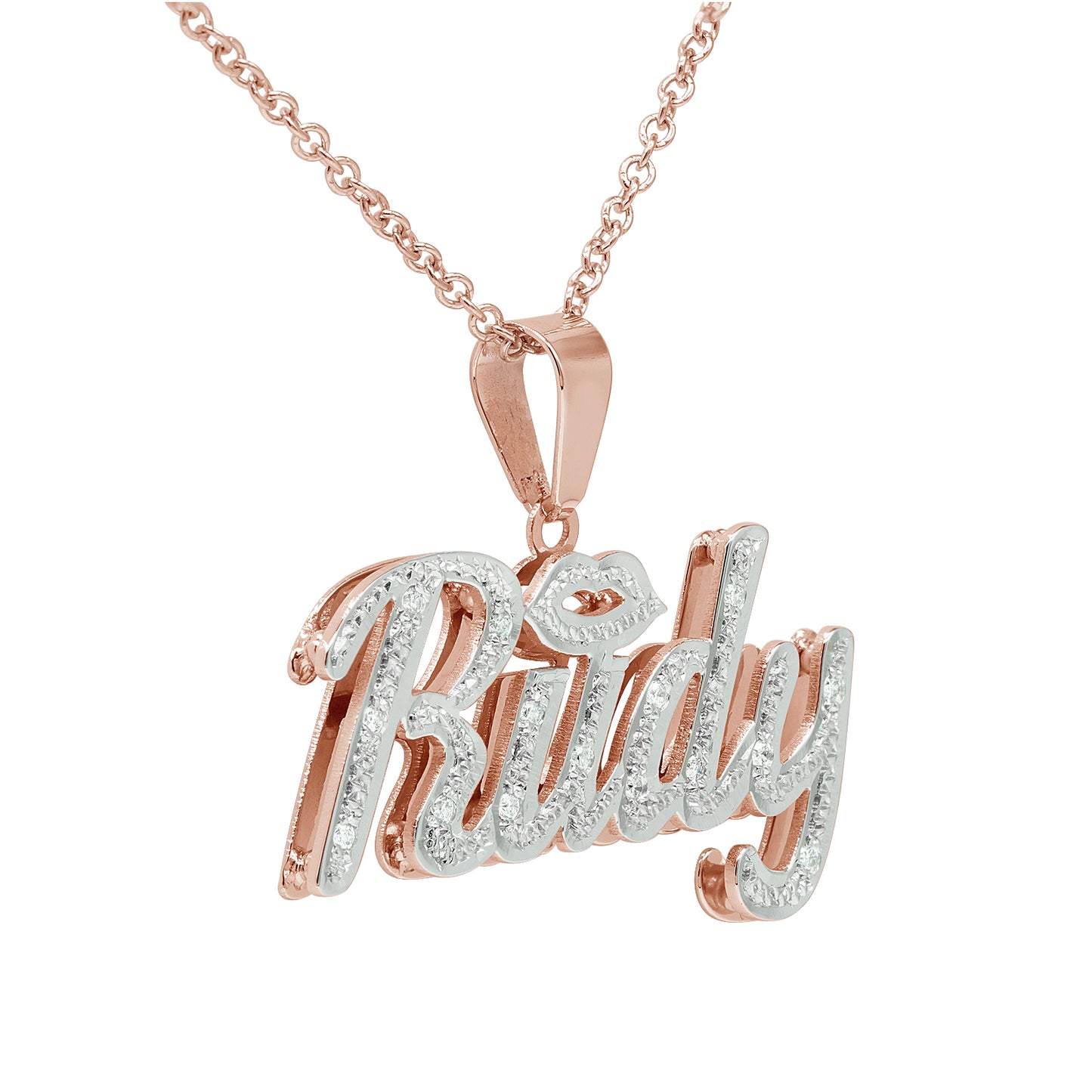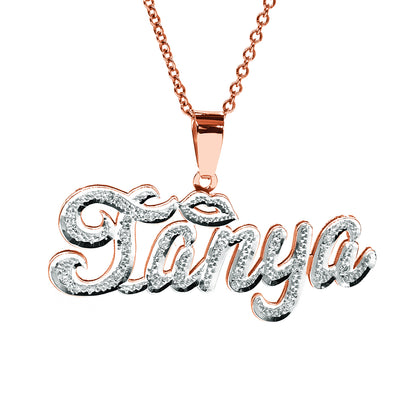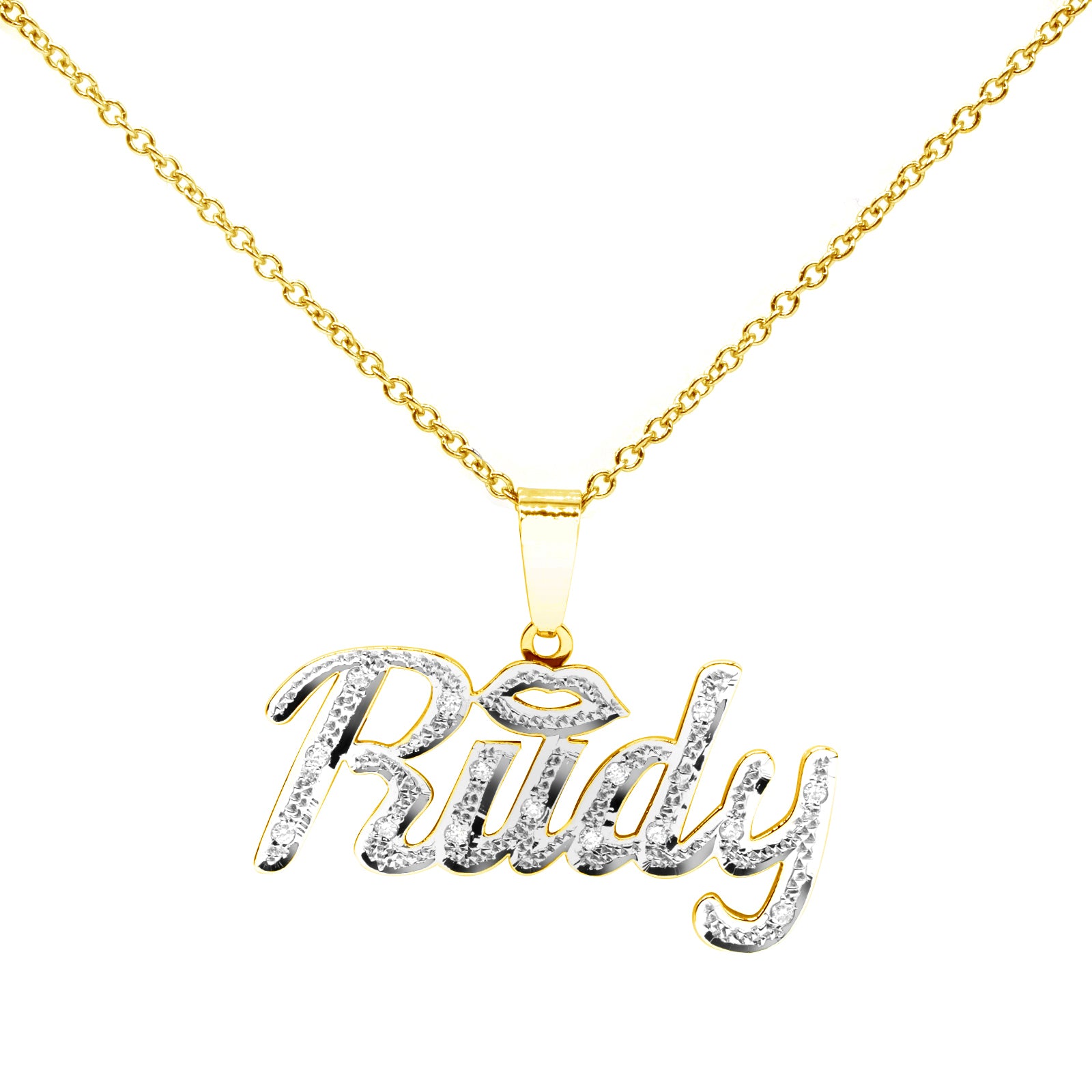Personalized 14K Gold and Diamonds Double Name Plate | Lips Design