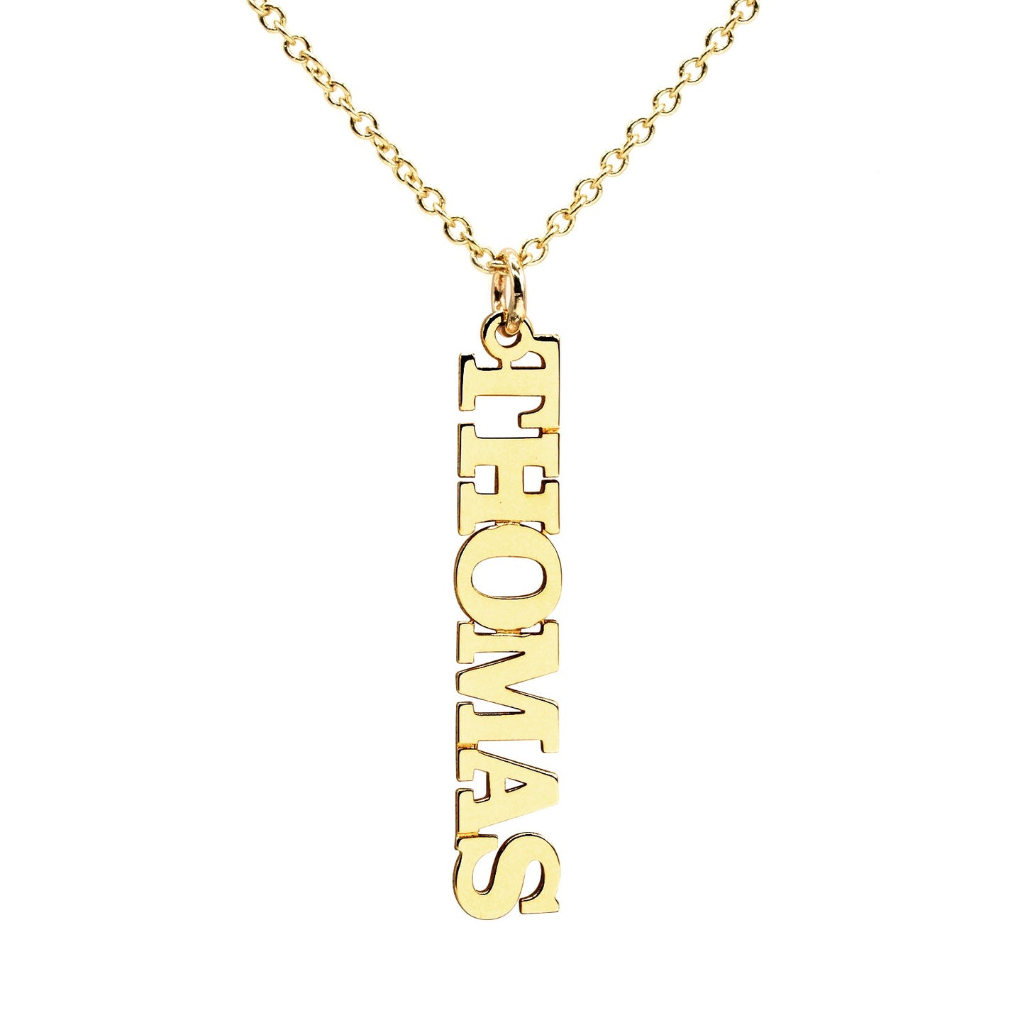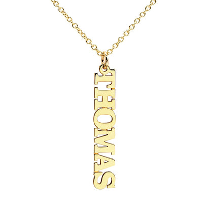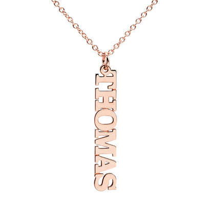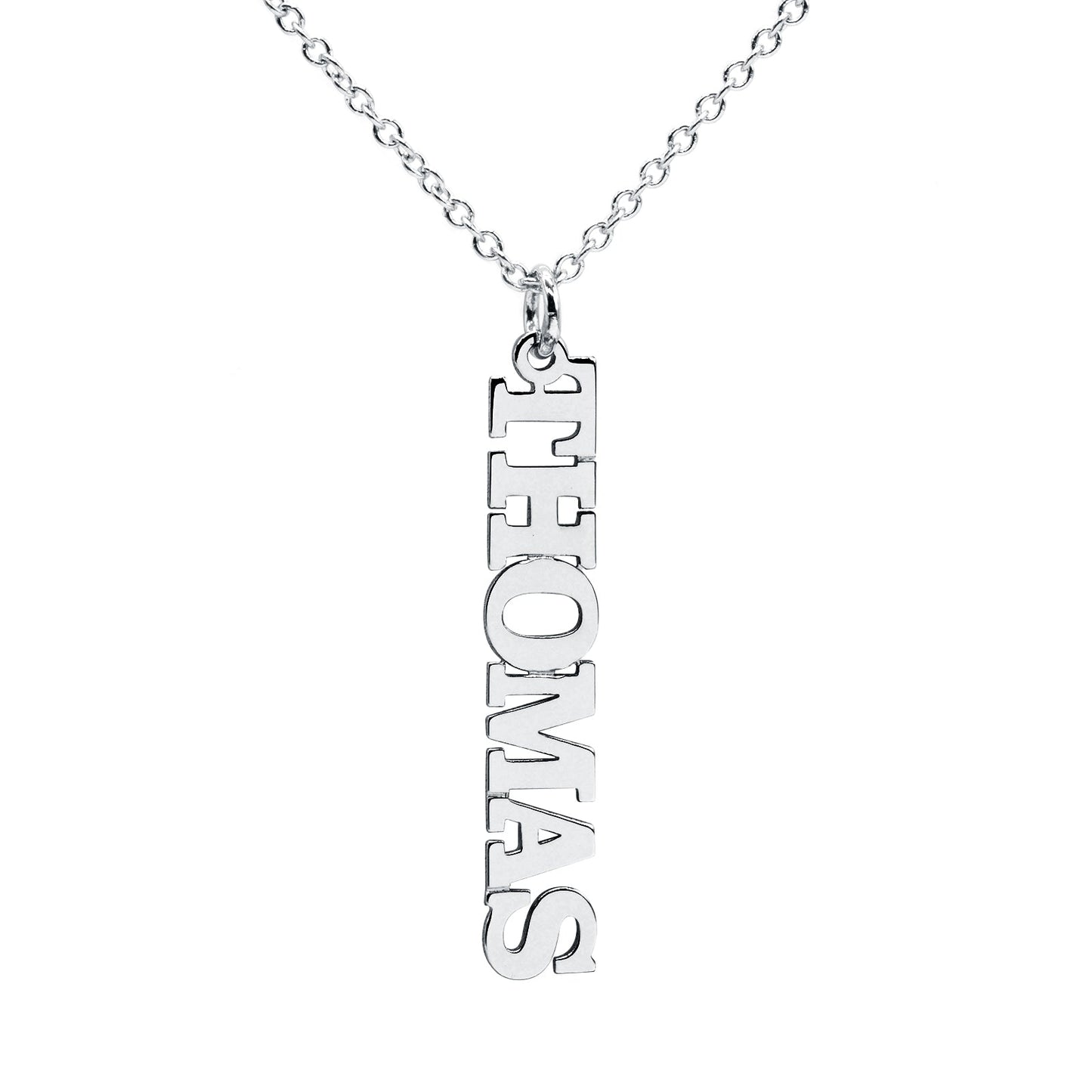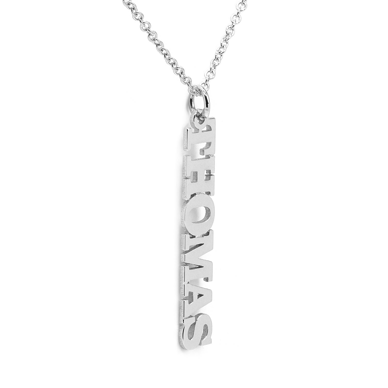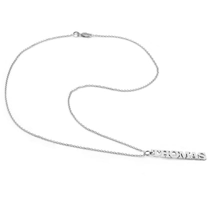 Personalized Sterling Silver Vertical Nameplate Pendant | Serif Text