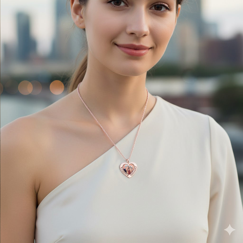 Personalized 14K Gold Picture Pendant - Heart Cut-Out Shape with Name