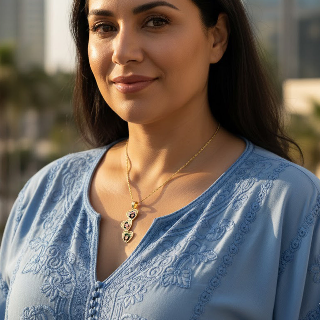 Personalized Picture Pendant 14K Gold with Hearts Cut-Out - Custom Jewelry with Your Photos