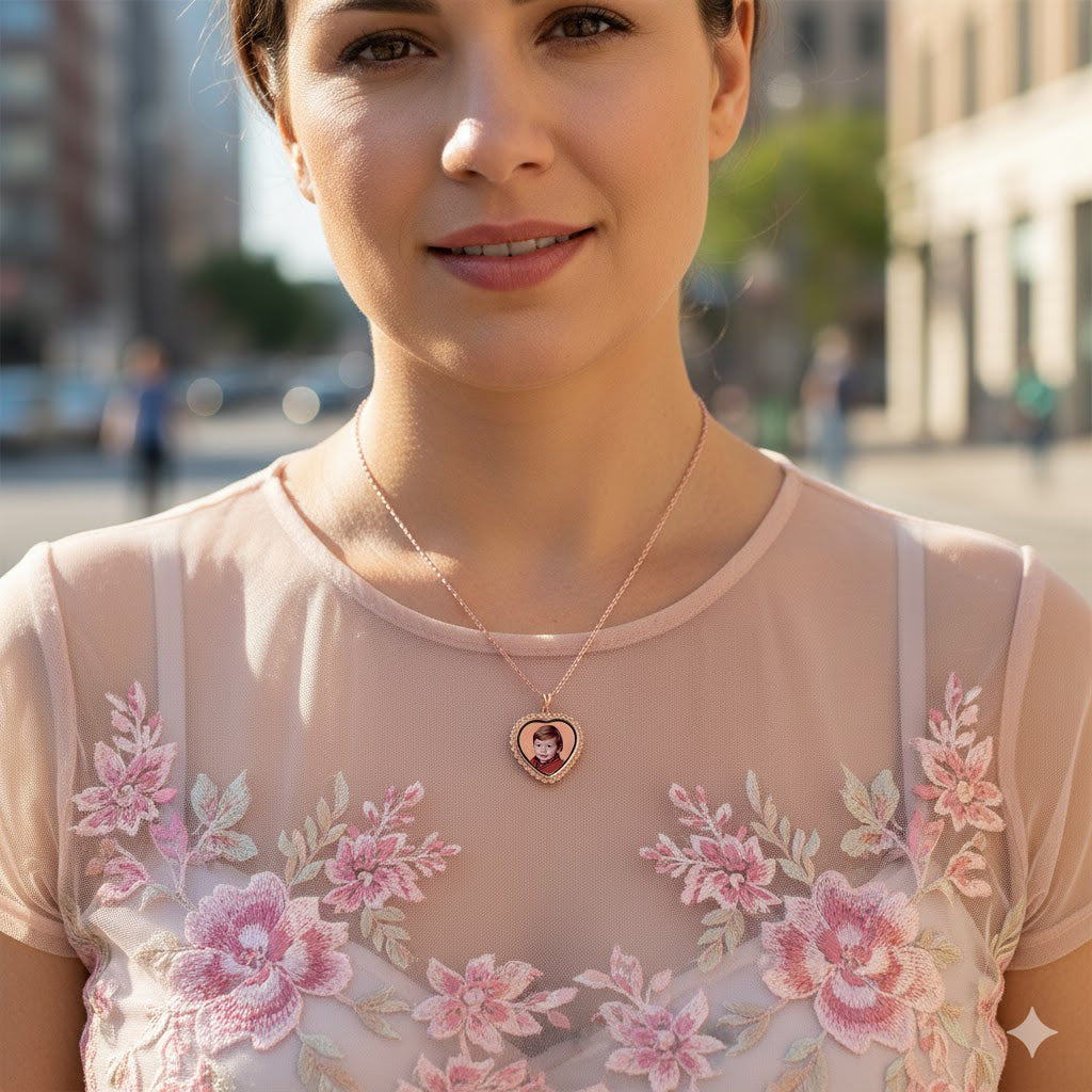 Personalized Photo Heart Locket Necklace | Waterproof, HD Laser Image, Mineral Crystal Memorial Necklace
