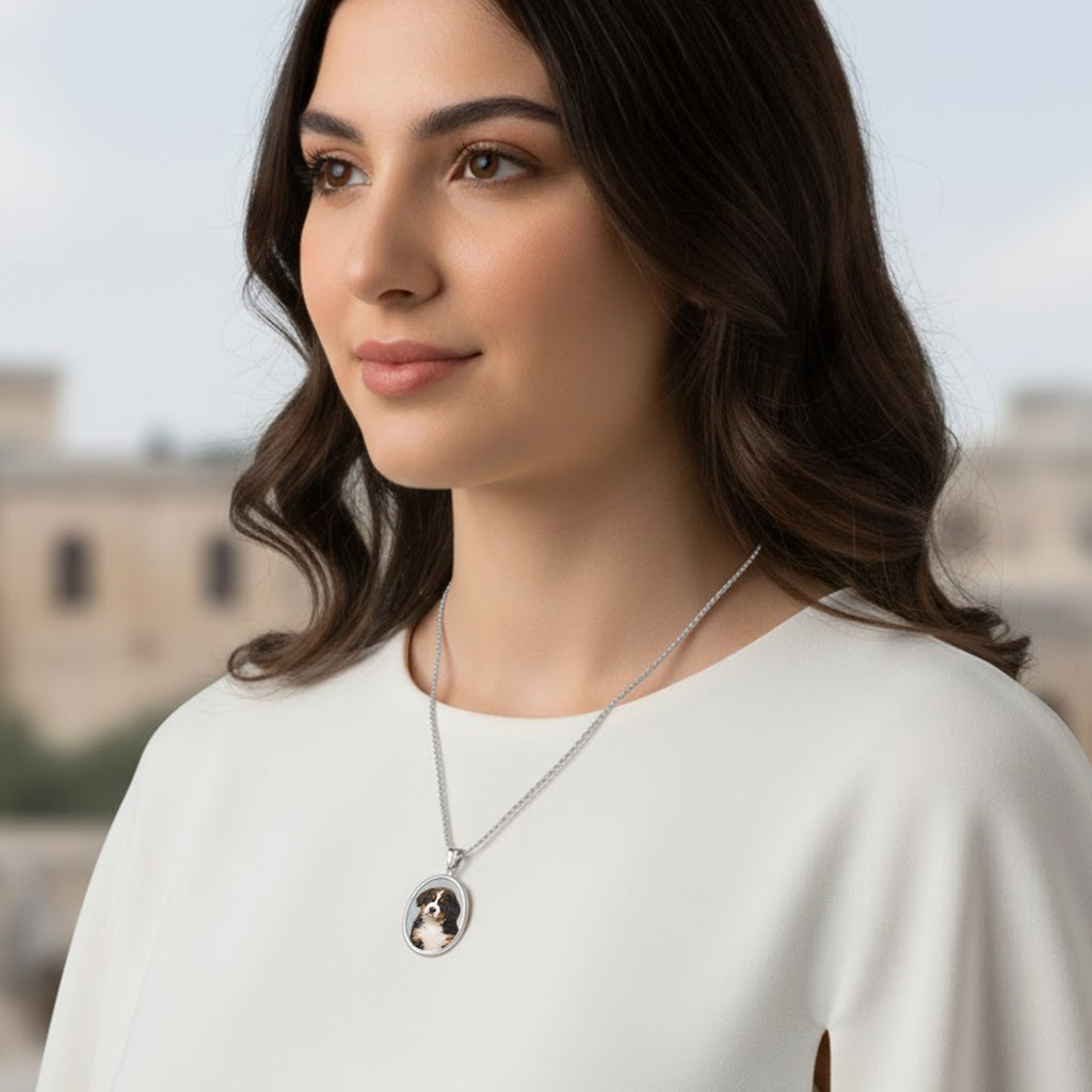 14K Gold Picture Pendant - Oval Shape with Mineral Crystal for Personalized Photo Charm