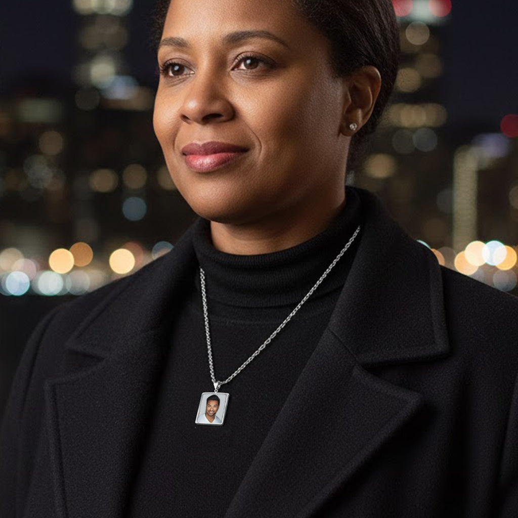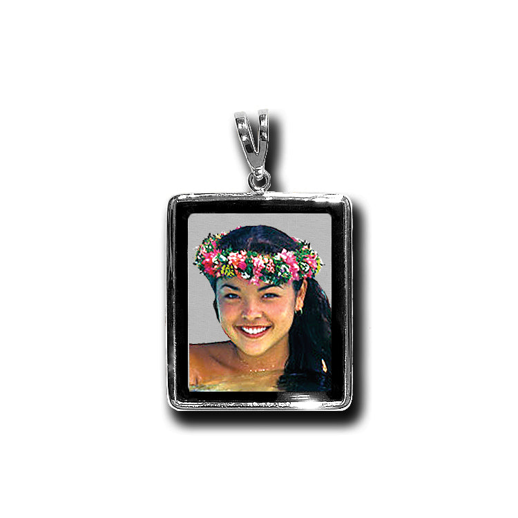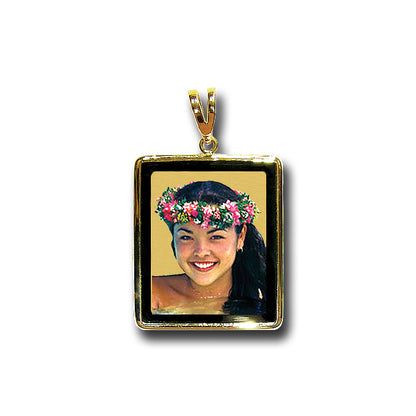 Personalized 14K Gold Picture Pendant - Rectangle Shape with Mineral Crystal and Black Border