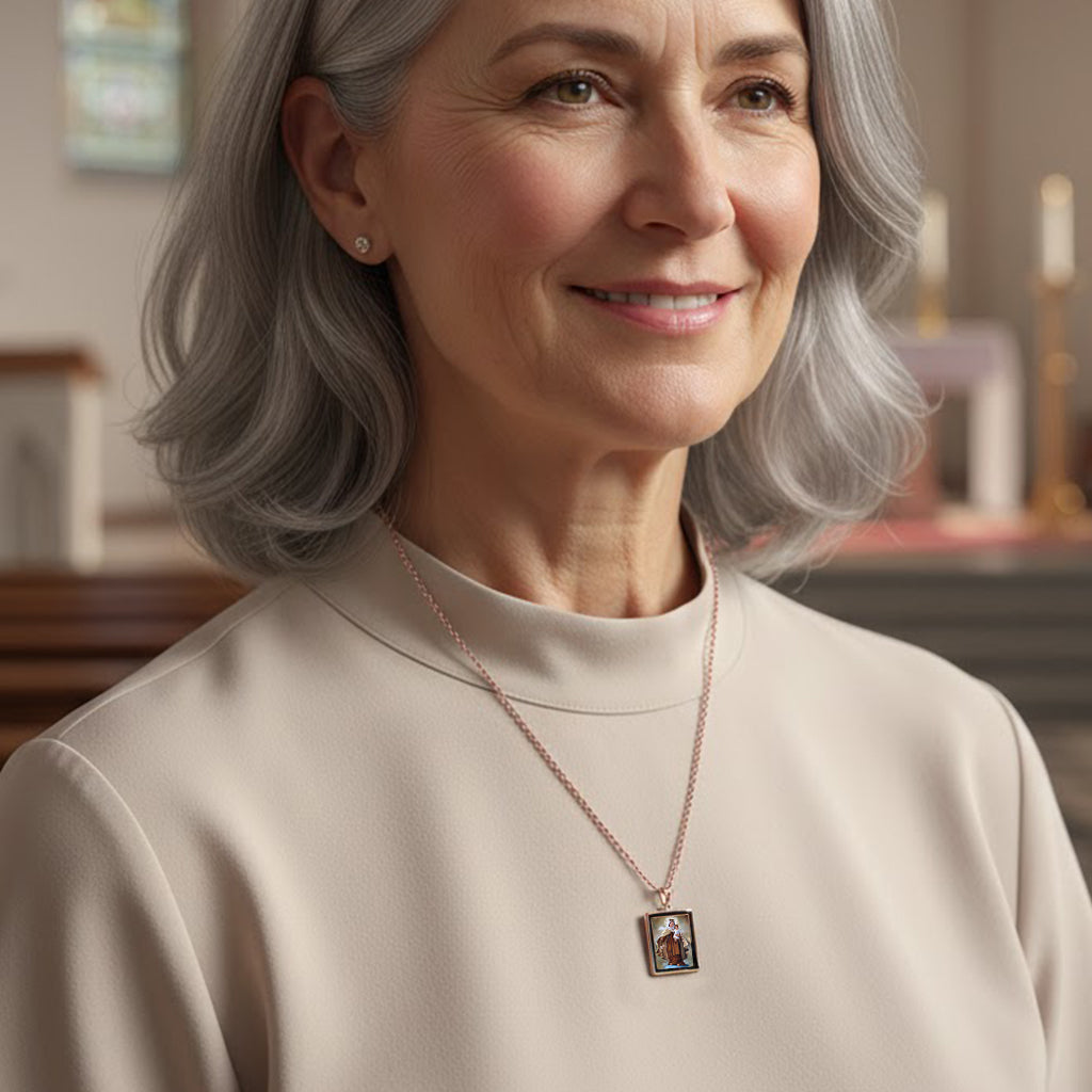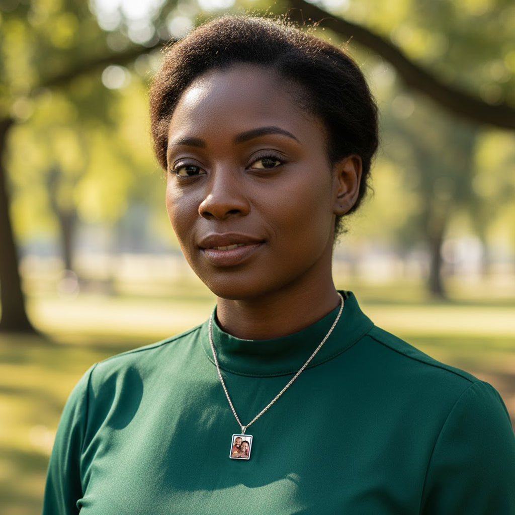 Personalized 14K Gold Picture Pendant - Rectangle Shape with Mineral Crystal