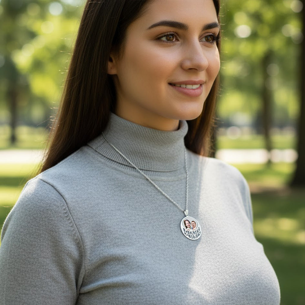 Charming 14K Gold Picture Pendant Round Pendant with Two Names Cut-out and Oval Shape Cut-out