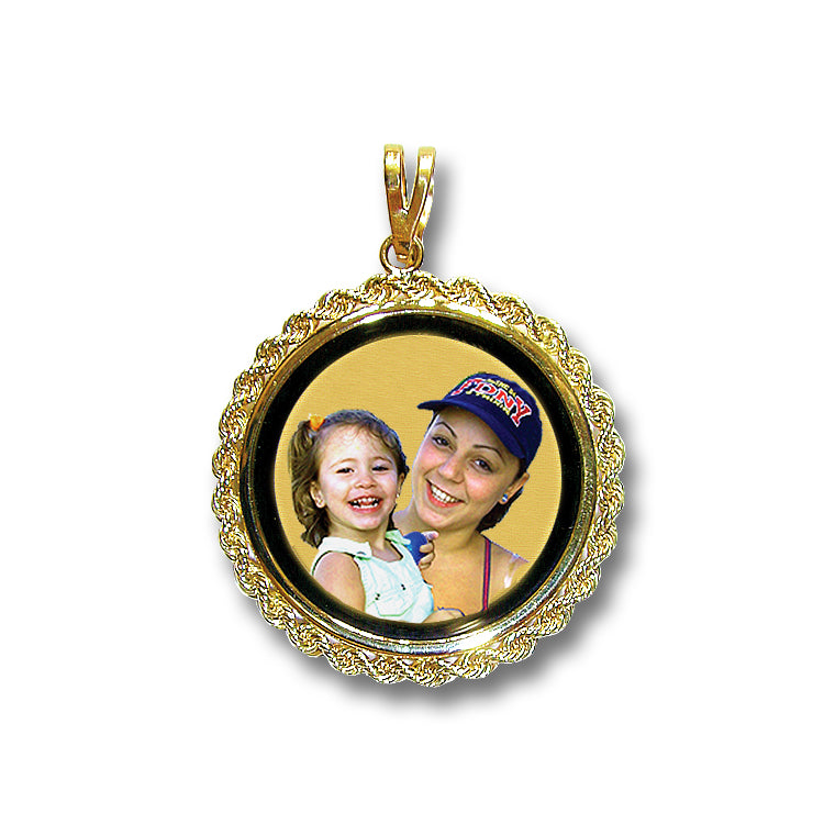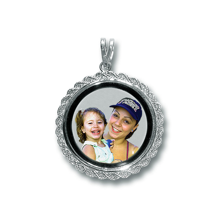 Round Picture Pendant - Round Shape with Rope Chain Frame, Black Border, and HD Laser Printed Custom Jewelry with Your Pictures
