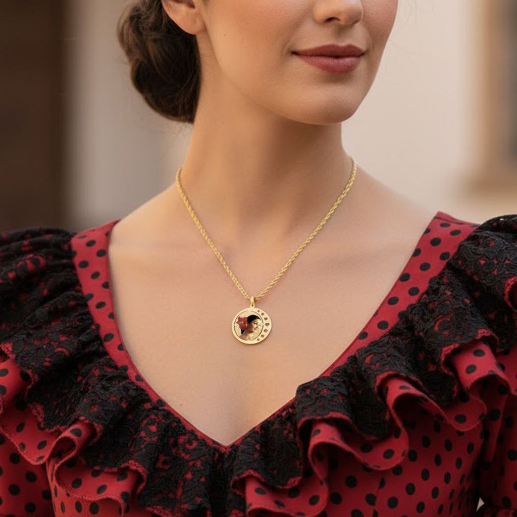 Round Picture Pendant 14K Gold with Hearts Punch Out - Personalized Custom Jewelry with Your Pictures