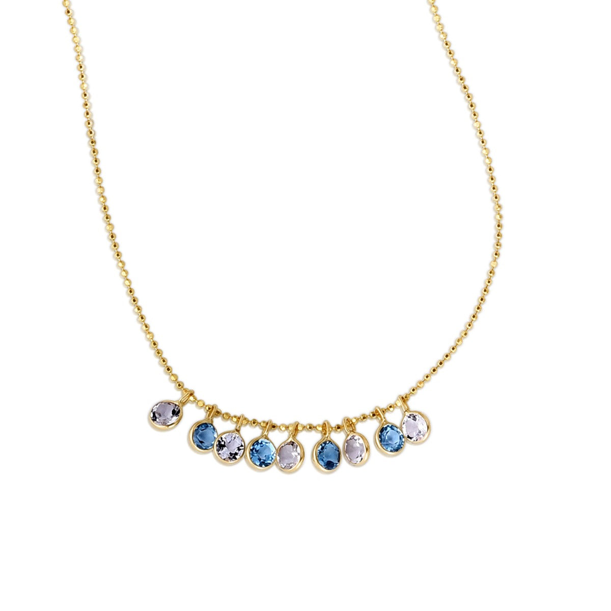 14K Gold Blue and White Topaz Dancing Drop Necklace