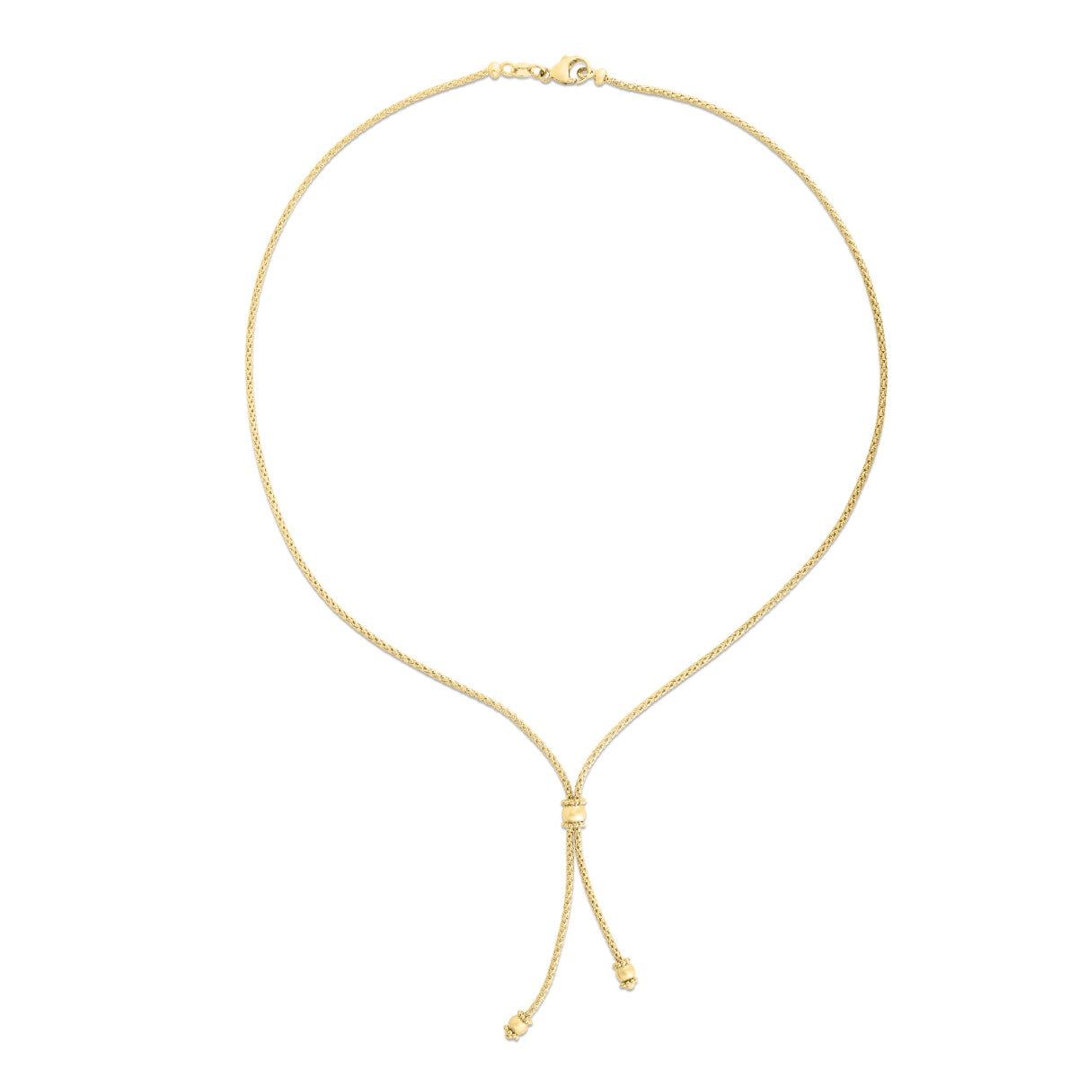 14K Gold Diamond Cut Bead Lariat Necklace with Lobster Clasp