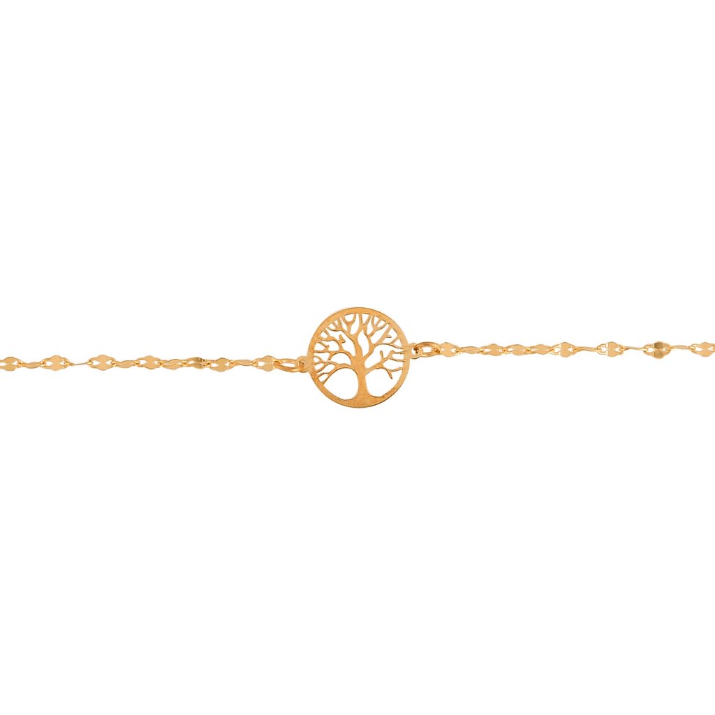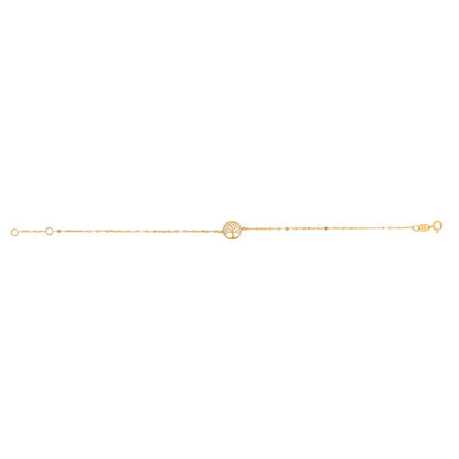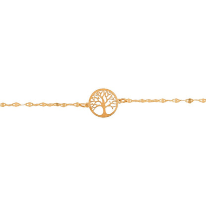 14K Gold Tree of Life on Mirror Chain Bracelet