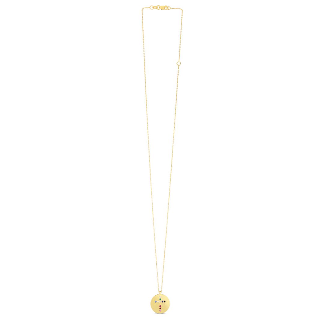 14K Gold and Gemstone Inlay Rainbow Cross Disc Medallion Necklace