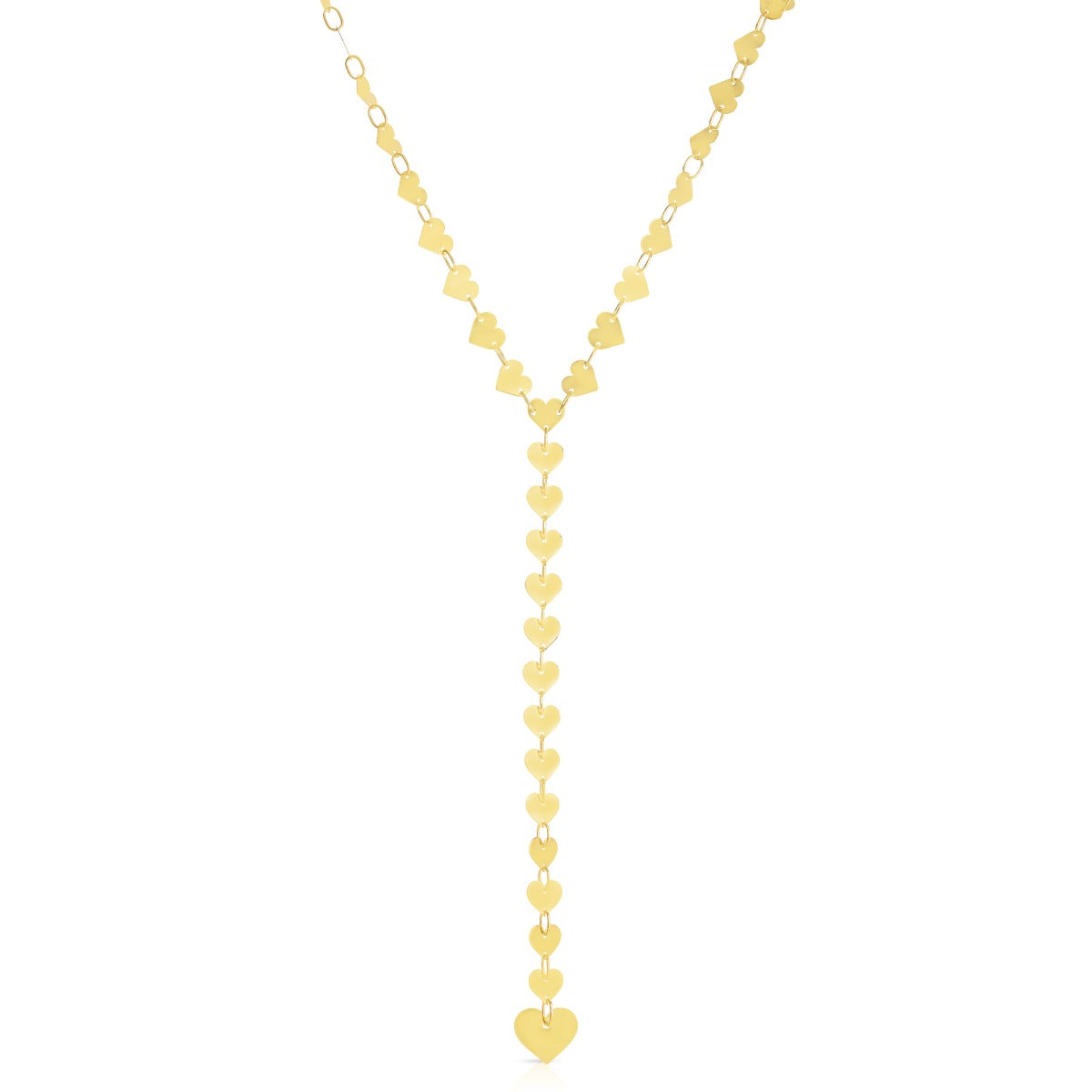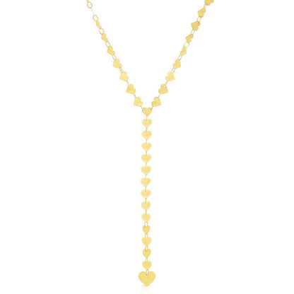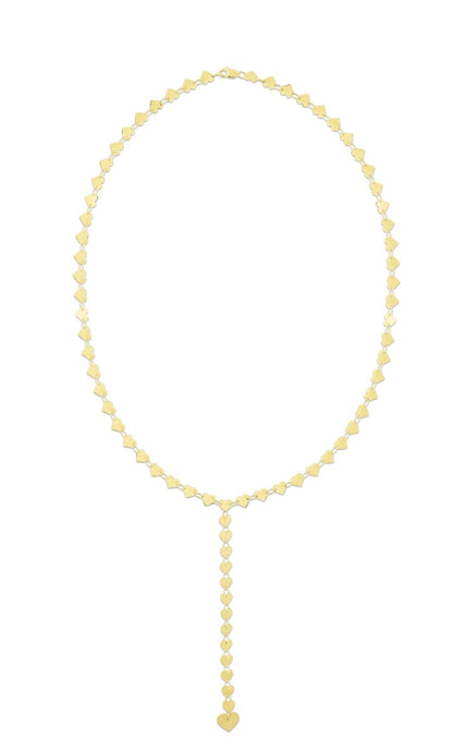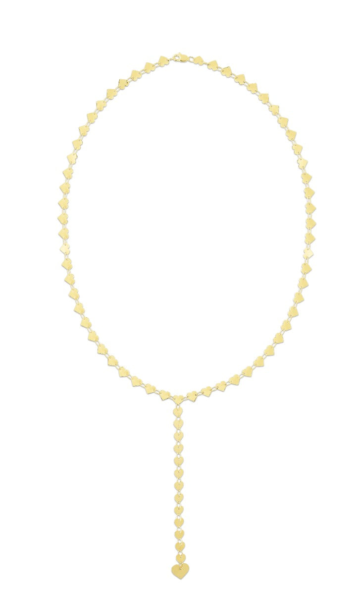 14K Gold Mirrored Chain Heart Lariat Necklace