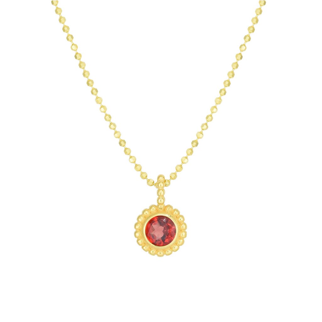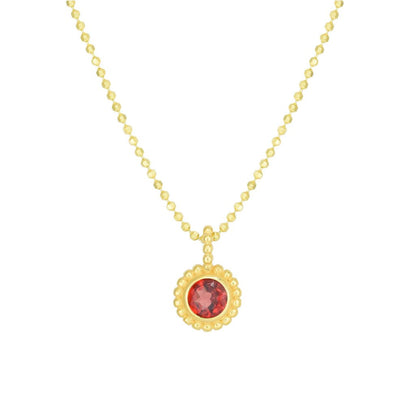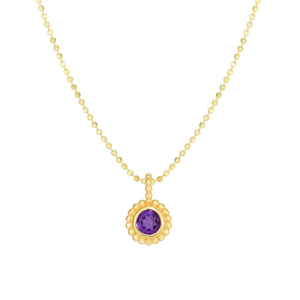 14K Gold Polished Round Beaded Pendant with Gemstone Options