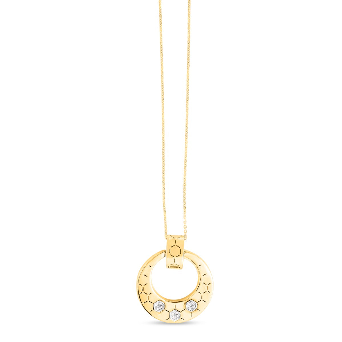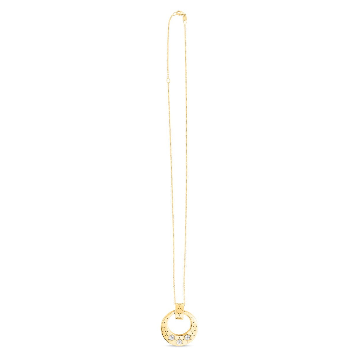Two Tone 14K Gold Polished Honeycomb Pendant Chain Necklace with Lobster Clasp