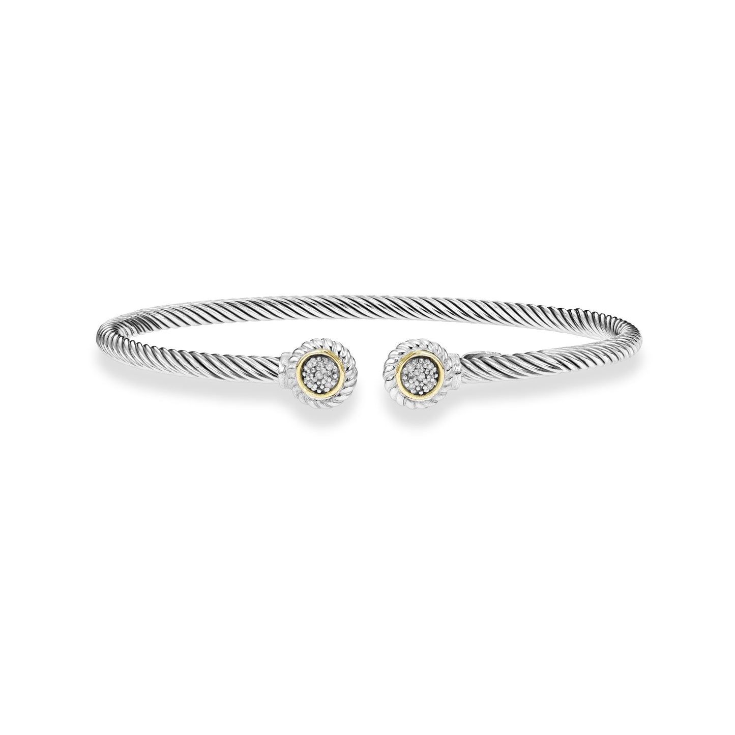 18K Gold & Sterling Silver Italian Cable Cuff Bangle with Diamond
