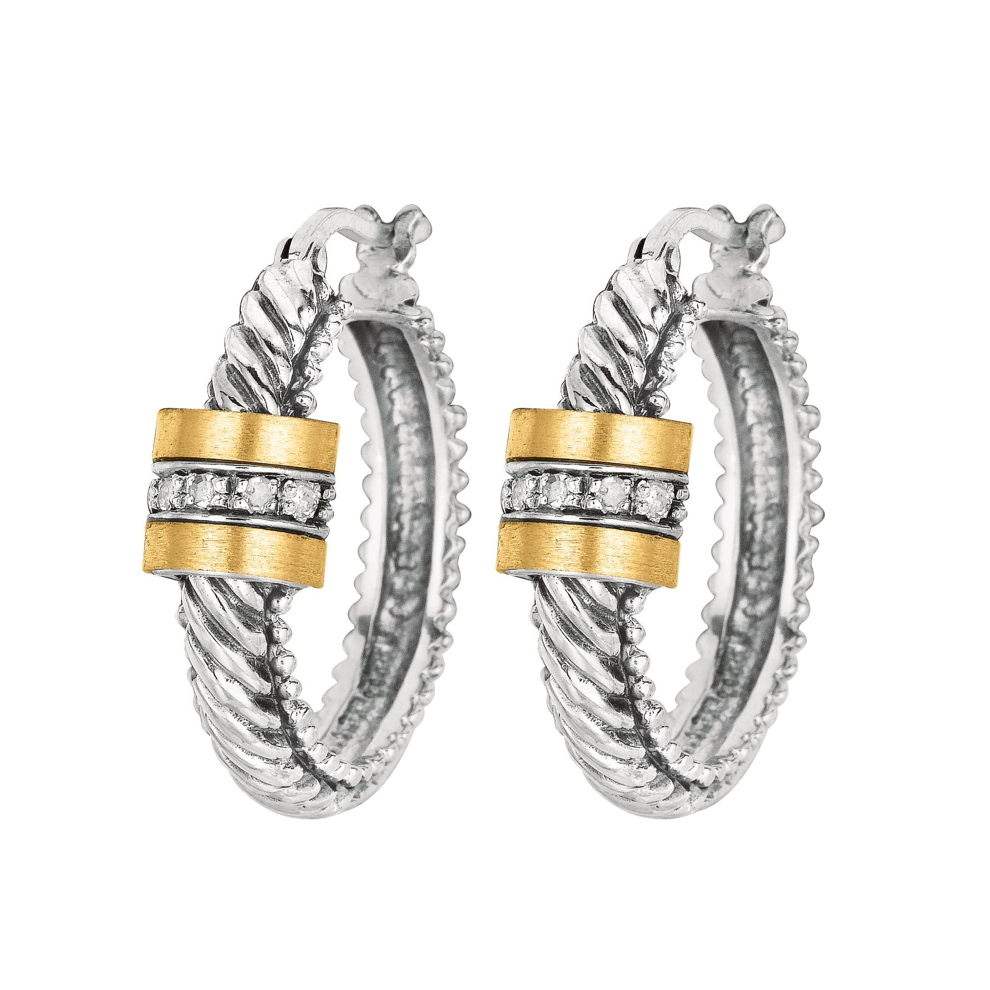 0.10ct Diamond and 18K Yellow Gold Sterling Silver Oval Twisted Hoop with Barrel Diamond Center