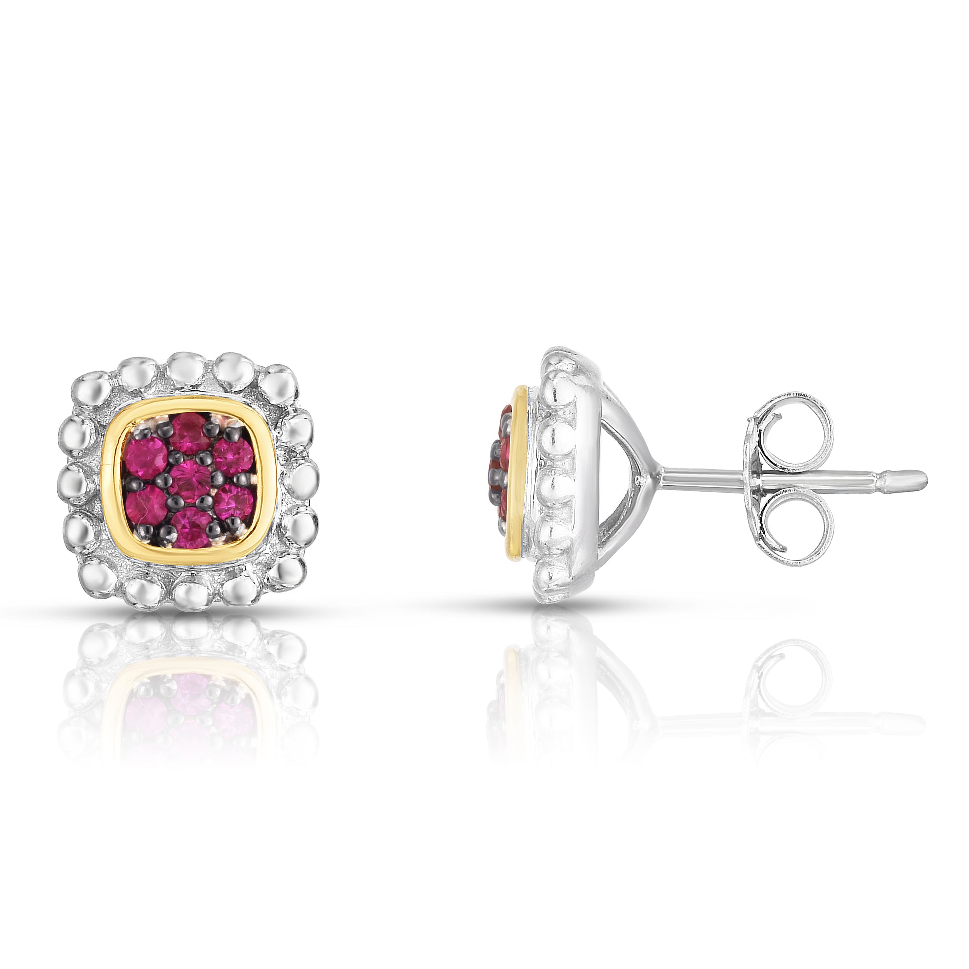 Sterling Silver & 18K Gold Quadra Popcorn Studs with Gemstone Options