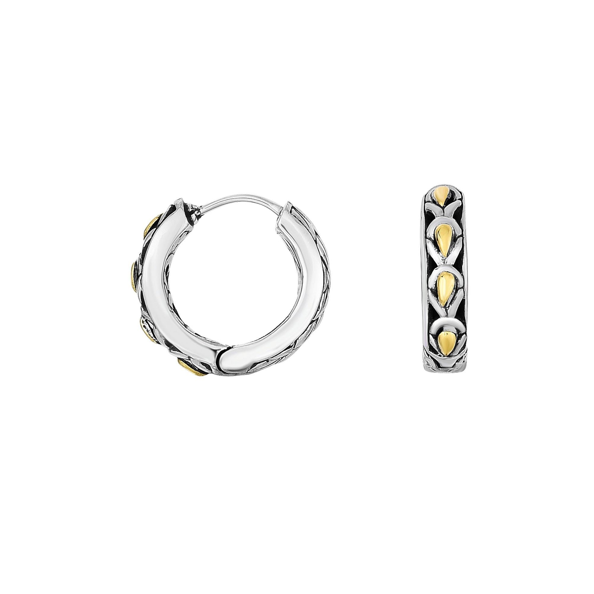 18K Yellow Gold Oxidized Byzantine Huggie Style Earring with Snap Clasp
