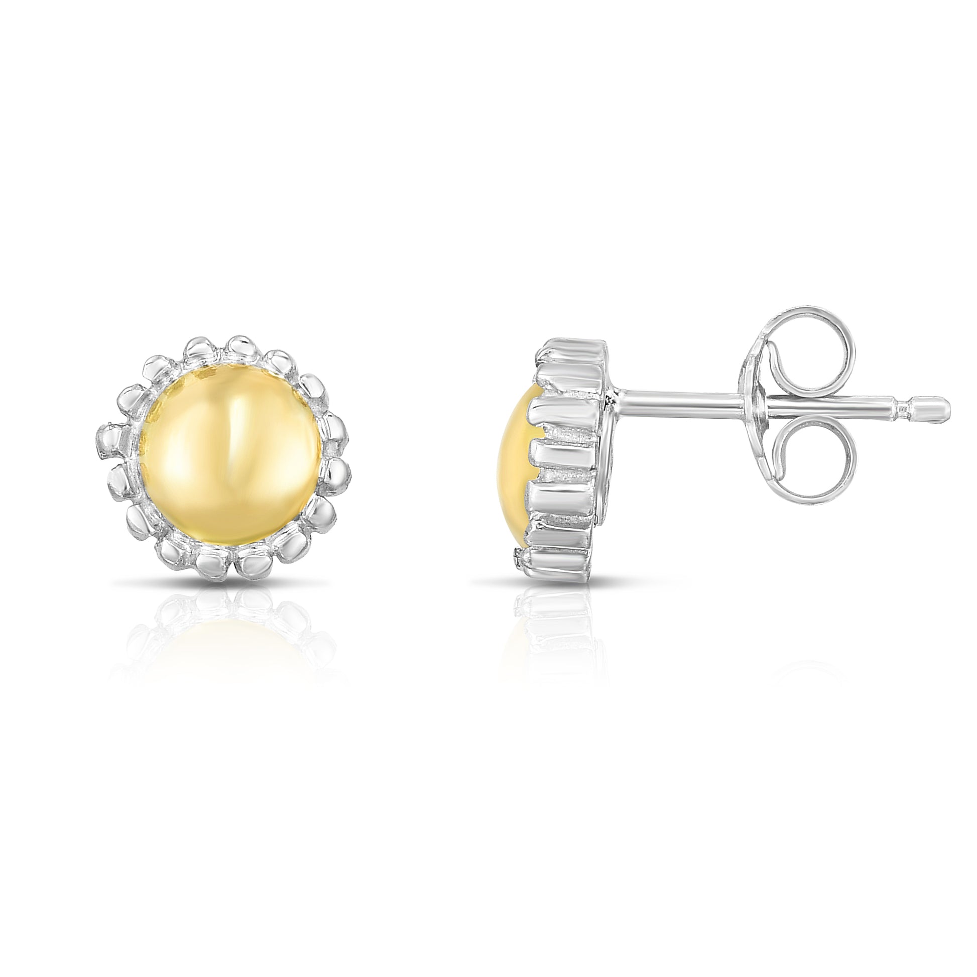18K Gold & Sterling Silver Round Stud Earrings