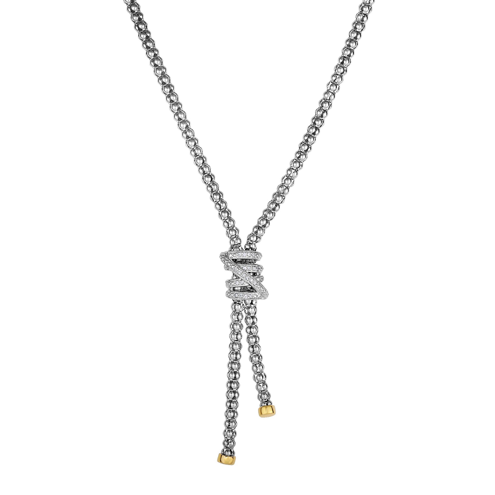 18K Gold & Sterling Silver and Diamonds with Popcorn Textured Lariet Style Necklace