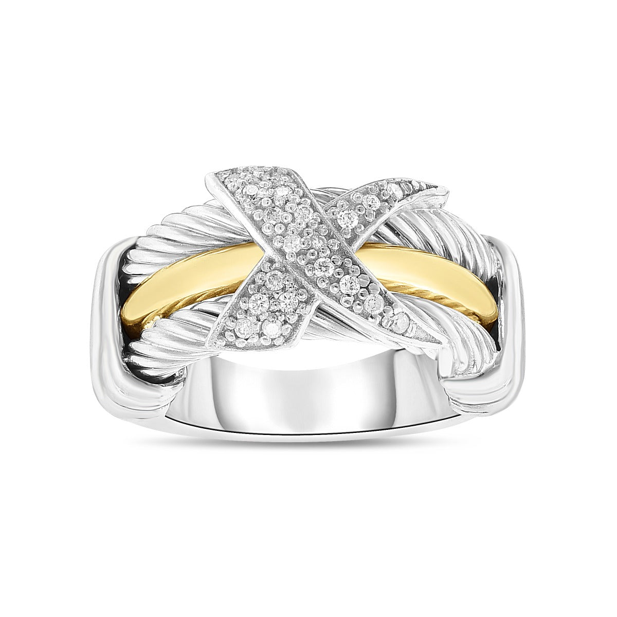 Triple Row Diamond X Ring in Silver & 18K Gold Polished Ring with 0.10ct White Diamond