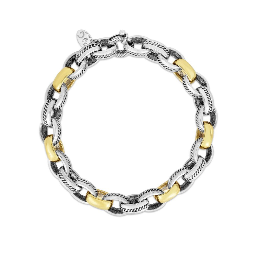 18K Gold & Sterling Silver 8.50in Alternate Oval Link Bracelet