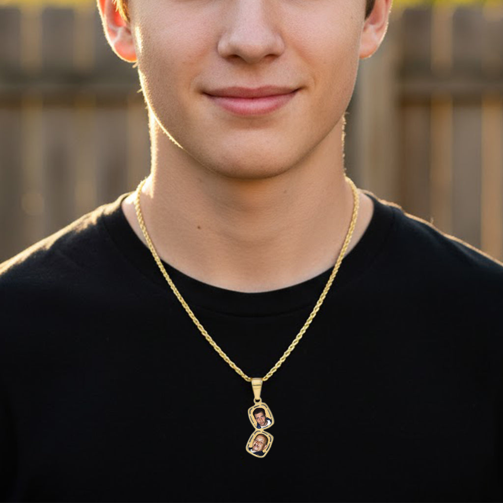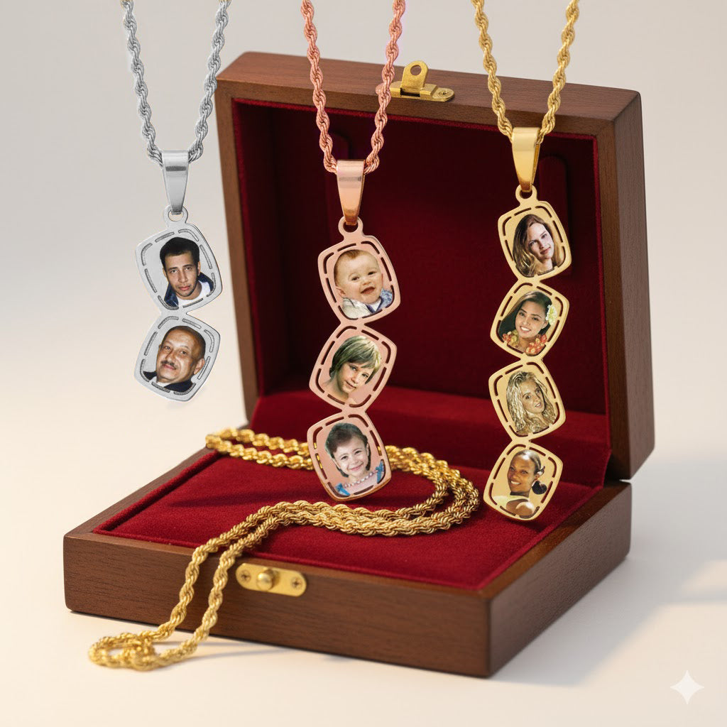 Rounded Rectangle Mother Pendant with Squares Cut Out Picture Pendant | Sterling Silver