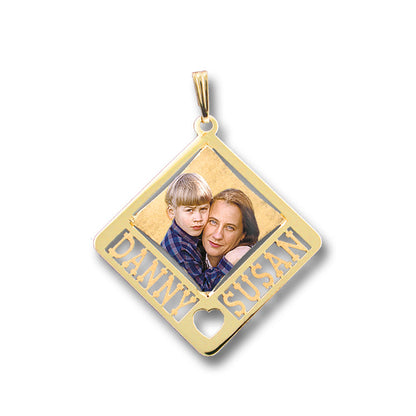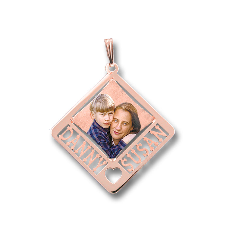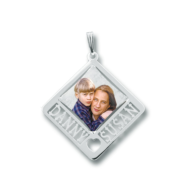 Personalized Picture Pendant - Rectangle Shape with Heart Punch-Out and Two Names | Sterling Silver
