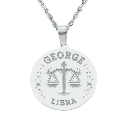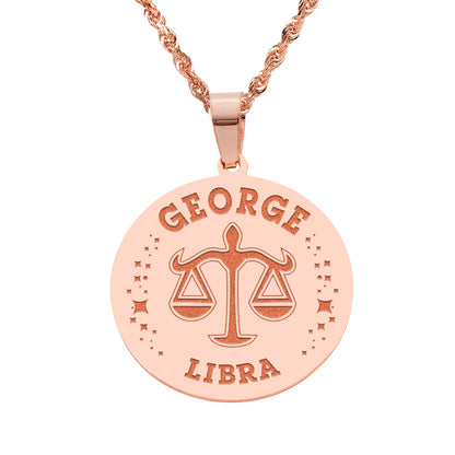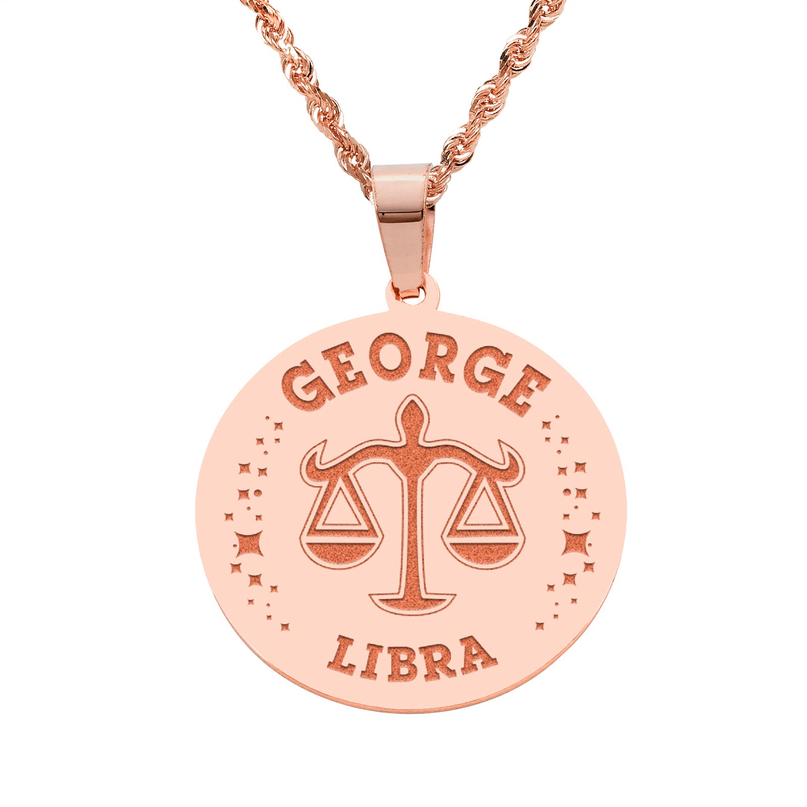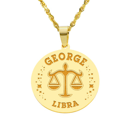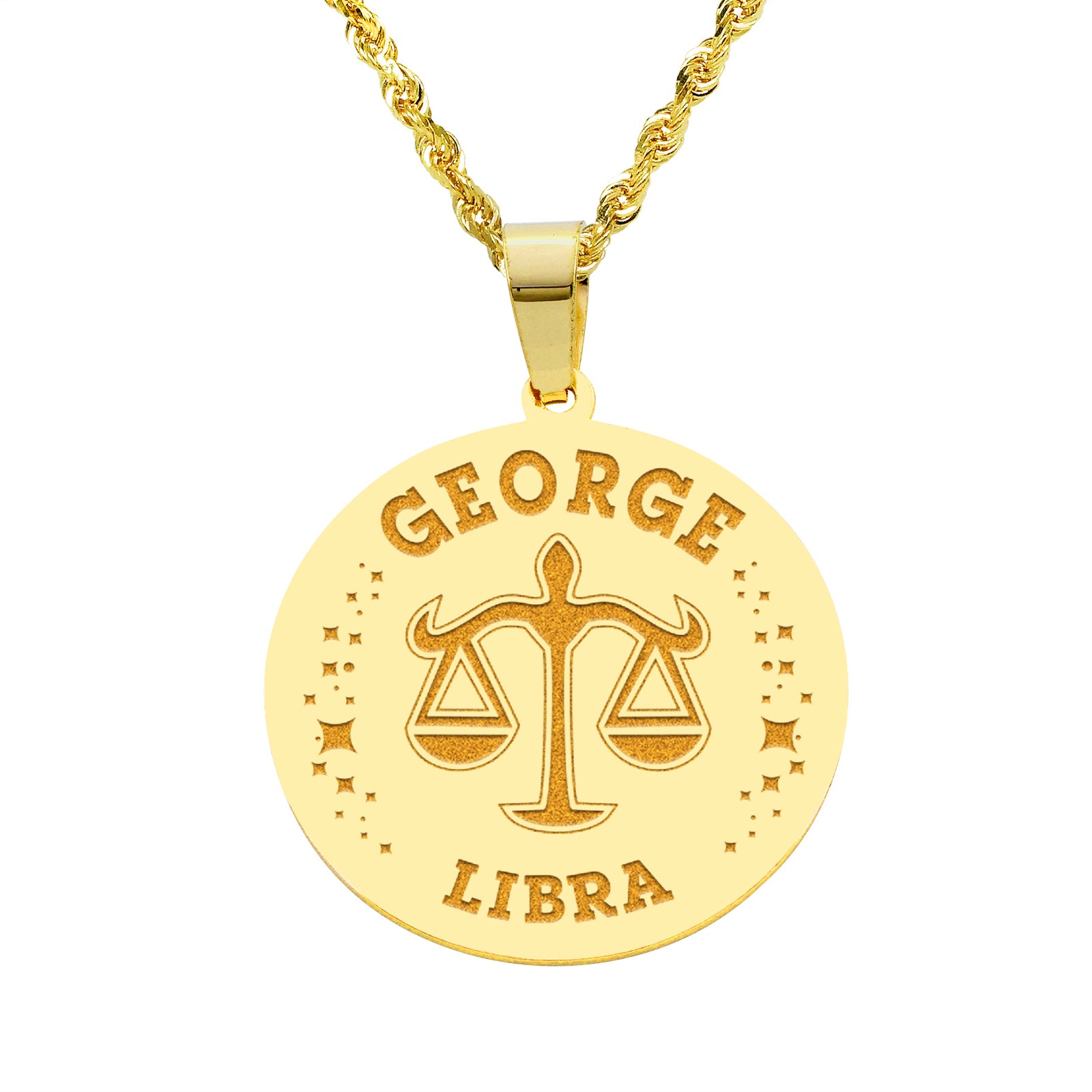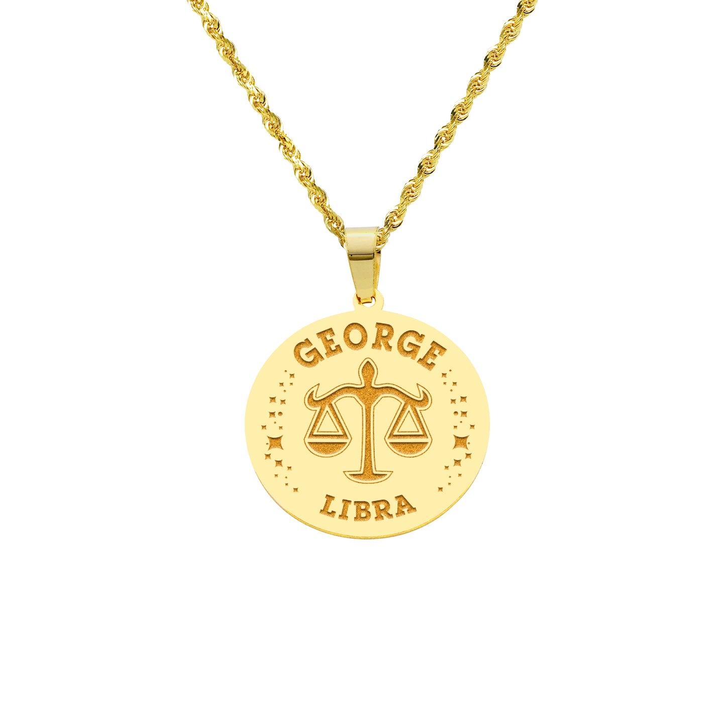 Zodiac Engraved Pendant with Customizable Name in High Polished 14K Gold | 0.75" Libra